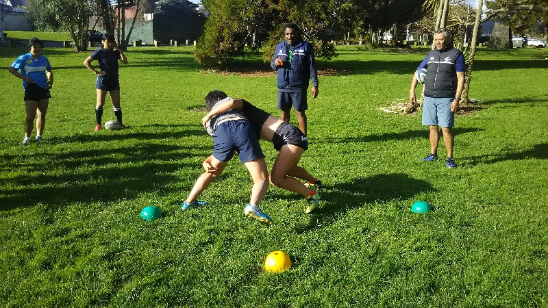 迎えた8月26日の最終戦。会場のGribblehirst Parkでは男子チームの試合と合わせて12試合が行われ、ラグビーフェスタさながらの緊張感が走ります。同じグラウンドで練習をしてきた男子チームのプレーに声援を送りながら、3週間の集大成となる試合に挑みました。初戦の相手は1週目に対戦したKelston Girls’ College。開始早々30秒でトライをあげ幸先良いスタートを切りました。第二試合はU15カテゴリーで昨年度NZチャンピオンになったHowick College。ROCKYが指導するこのチームには絶対に負けられません。立ち上がりこそ相手にペースをつかまれトライを取られてしまいましたが、そこからはトライラッシュ!終わってみれば5トライをあげ見事勝利を収めました。そしていよいよ12名で臨む最後の試合、Mount Roskill Grammar Schoolに挑みます。仲間を信じてラグビーを楽しみながらプレーし、3戦3勝を収め、負け知らずでプログラムを締めくくりました。(なんと6戦6勝です!)