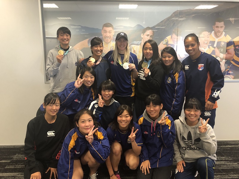 スキルトレーニングを担当するKellyコーチはブラックファーンズ(NZ女子代表)として現在も活躍するアスリート。先月の7人制ワールドカップの優勝メンバーでもあり、15人制ワールドカップやリオオリンピックなどで数々のメダルを獲得しています。それらのメダルを見せていただく機会もあり、初めて触れる金メダルの重さにKellyコーチの指導の貴重さを再認識したラガールたち。グラックファーンズの試合映像を使ったゲーム分析では分析結果を英語で発表するなど、とても意欲的に取り組みました。
