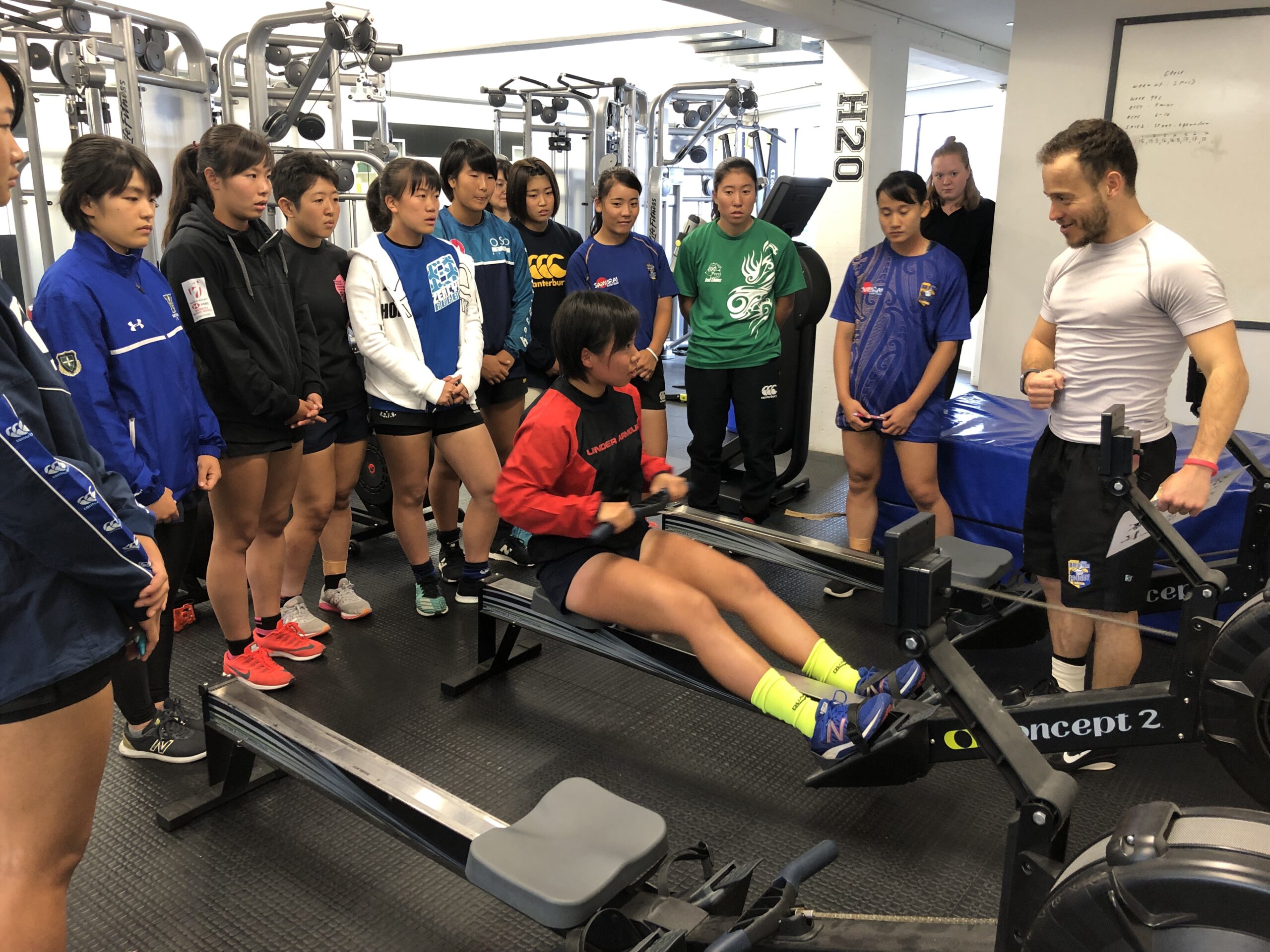 S&Cを担当するKoenコーチは「分からないことは何度でも質問してね」と笑顔でトレーニングメニューを説明します。ジムセッションの開始までに毎日各自で取り組むメニューは意識するポイントが明確で、シンプルなもの。ひとつひとつ丁寧に取り組むラガールにKoenも感心していました。