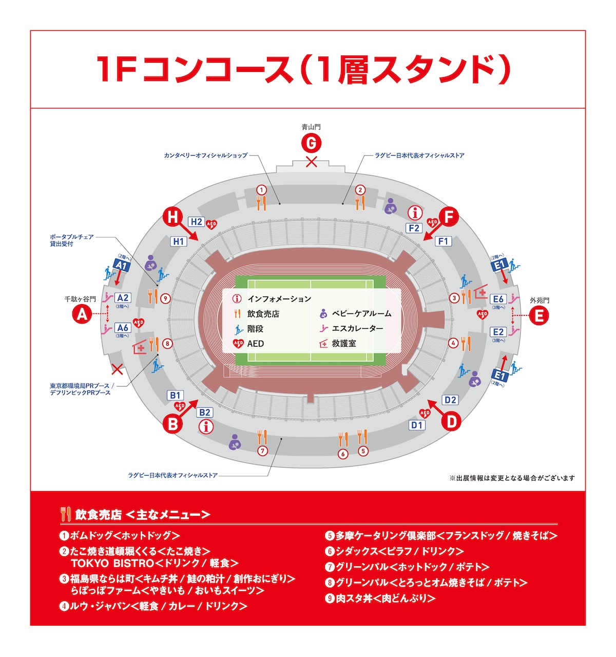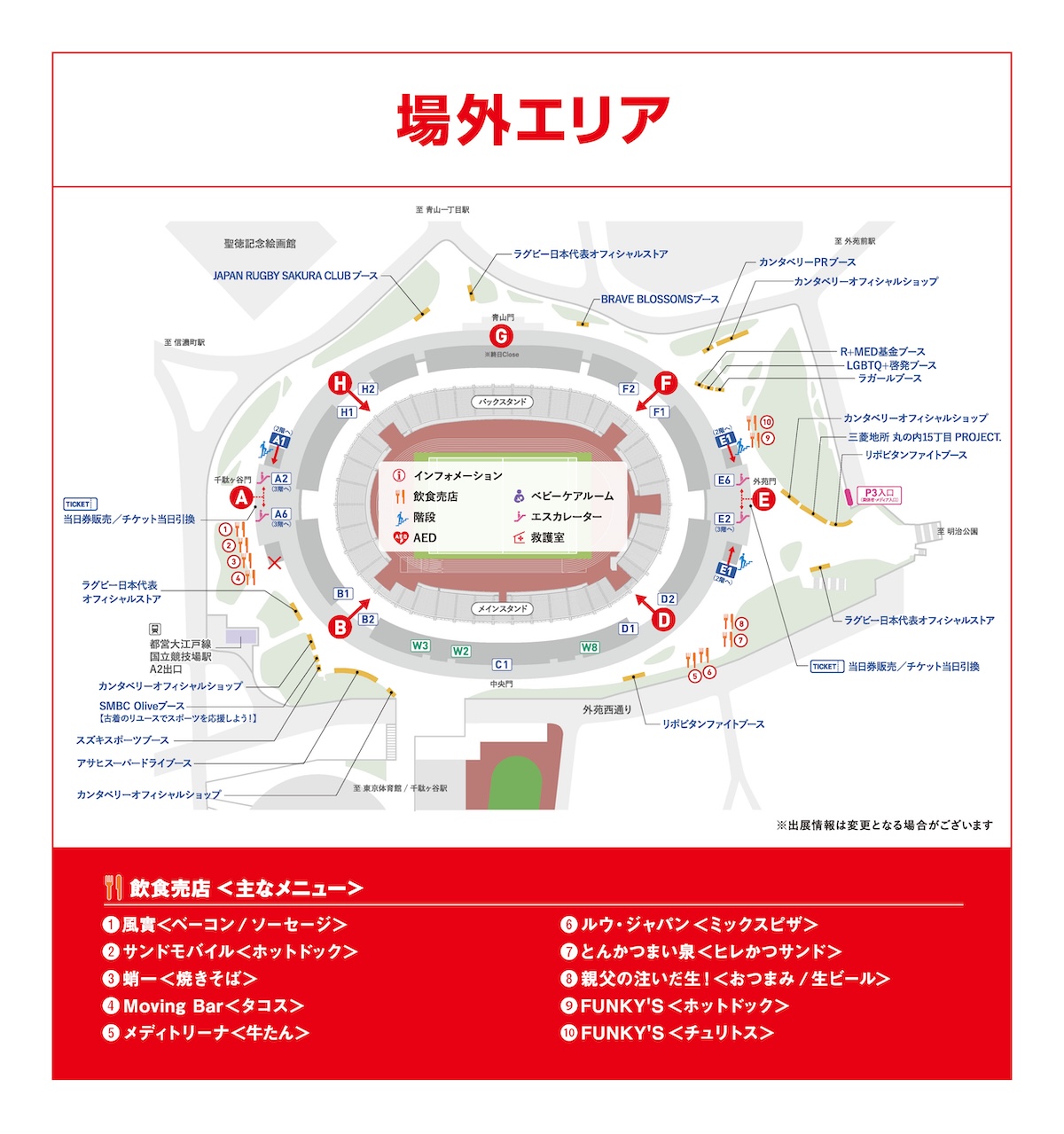・観客救護室:体調のすぐれない方はお近くのスタッフにお声掛けください。救護ビブスを着用したスタッフの巡回も実施いたします。