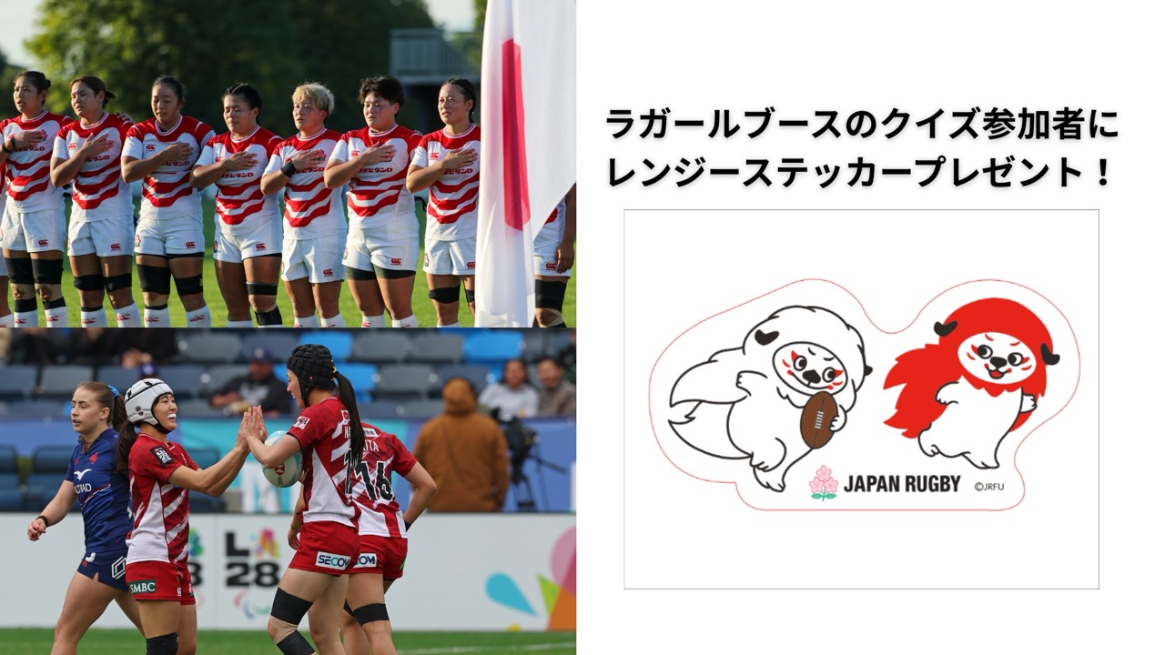 今年開催された女子ラグビーワールドカップをはじめ、女子国内大会やセブンズ大会に関する展示を行います。展示に関するクイズに参加いただいた方にはJRFUオリジナルレンジーステッカーをプレゼント!ぜひお立ち寄りください。