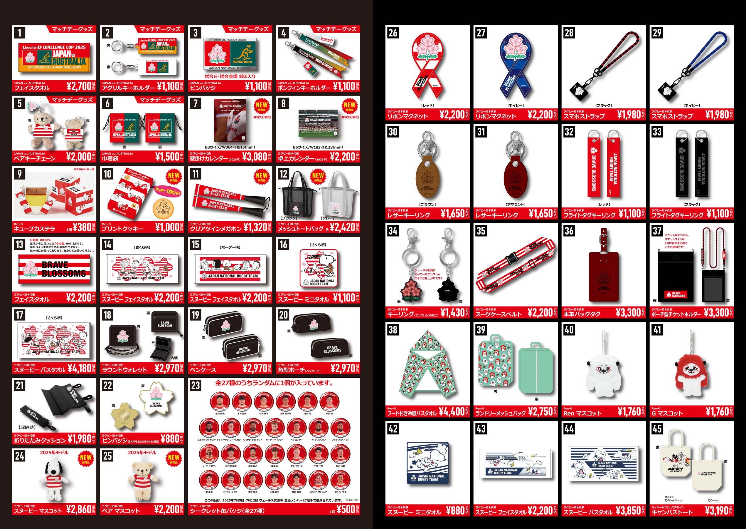 日本代表 vs オーストラリア代表を記念したマッチデーグッズ、ラグビー日本代表オフィシャルラインセンス商品のラインナップです。