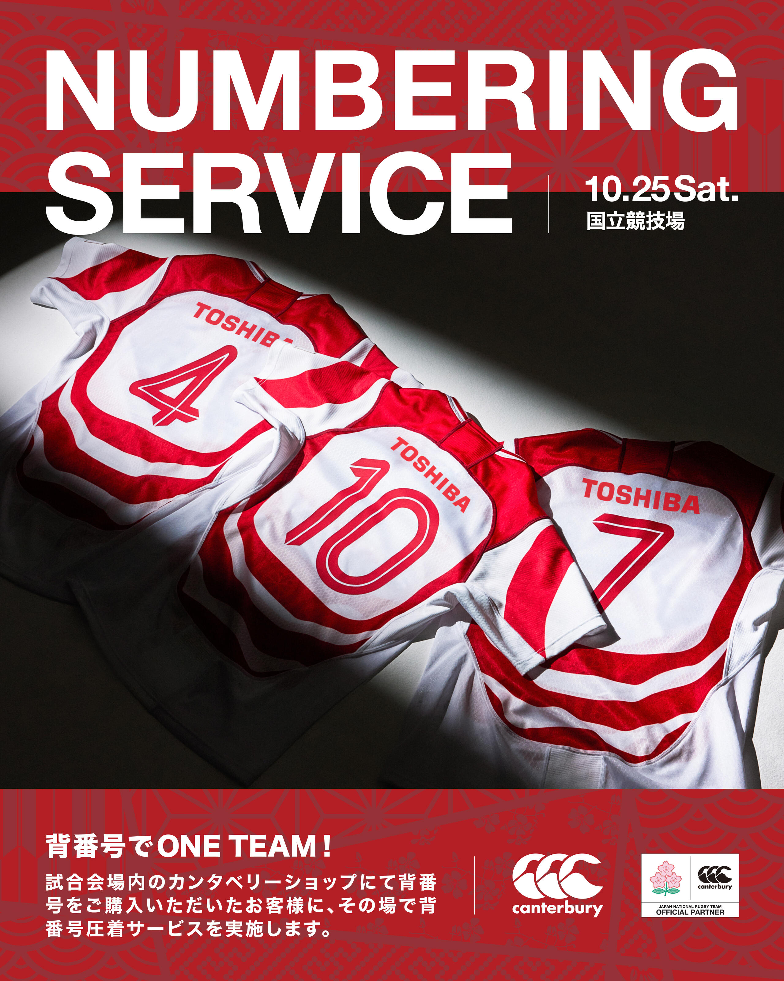 隣接するカンタベリーオフィシャルショップで背番号(¥3,850/税込)をご購入いただいた方に限り、即日ナンバリングサービスを提供いたします。
