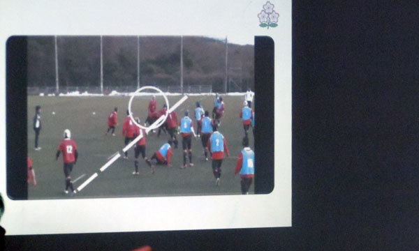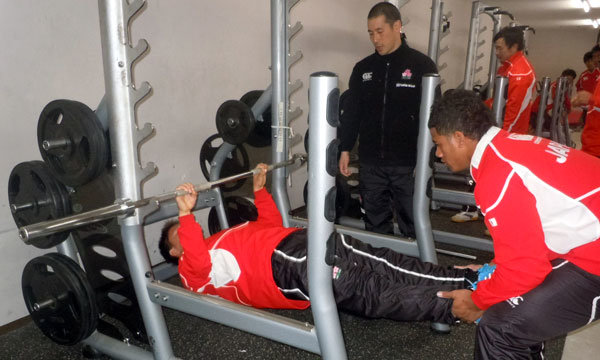 強化合宿スケジュール・高校日本代表メンバーはこちら ■2014年2月21日(金) 合宿も最終日です。 心配されていた天候も崩れることなく、恵まれた天候の中での4日間でした。 本日も早朝トレーニングはウェイトトレーニングです。新しい種目をいくつかやりました。水平懸垂はなかなか難しそうでした。この種目も肩甲骨の開き、引き寄せと言ったような動作が重要になってきます。 強化合宿最後のセッションは練習前に前日20日のゲームのレビューを行い、課題修正を行う練習でした。次回合宿までの宿題確認です。 次の集合までは10日ほどしかありません。この間に一人ひとりがどれだけ課題に取り組んだり、フィットネスを上げてくるかが遠征の成果を大きく左右します。 セレクション合宿に引き続き今回も天理クラブ、天理大学、天理教校学園、宿舎の方々には本当にお世話になりました。本当にありがとうございました。 早朝トレーニング 今日は新しく垂直懸垂を行いました 練習前ミーティング 前日の試合のレビューから共通認識を 強化練習最後のユニット FW 強化練習最後のユニット BK 徐々にセルフアップができていくように・・・ クーリングダウンまでしっかりと 団長よりこの合宿の講評 閉講式 4日間お世話になりました ■2014年2月20日(木) 合宿3日目。 本日も朝のシェイクハンドコミュニケーションから始まりました。 本日も早朝セッションはウェイトトレーニングからです。今日は上半身のトレーニングを中心に行いました。最初に「懸垂」と「ベンチプレス」を、「肩甲骨を引き寄せたまま上げ下げをする」ということを留意して行いました。3人一組となってフォームチェックや器具の入れ替えが効率よく行えるようにして実施しました。合間にストレッチを入れて、後半は「フロントプレス」と「ルーマニアンデッドリフト」を肩甲骨を開いて寄せることを意識して行いました。 練習前のミーティングでは昨日の練習を映像で見てレビューを行い、本日の練習のゴールを全員で確認し共通認識を持って練習にのぞみました。特にディフェンスは相手より多く立つことと前に出ることを意識して、「コミュニケーション」と「意識」が常にできているかを確認しながらプレーすることを皆で確認しました。 そして午前中は天理大学生とアタックディフェンスを行いました。要所要所でストップ→修正ポイントの確認→共通理解を持って行いました。 午後は大学生と20分のゲームを3本行いました。格上の相手とやらせていただくことによって課題があらわになってきました。大学生のみなさんありがとうございました。 本日の夕食は天理ラグビークラブの方が我々のために夕食会を開催してくださいました。天理ラグビークラブ理事長の中田様はじめ、天理ラグビークラブの関係者の方々が出席して激励してくださいました。 その中の田中様は高校代表が4年前にフランスへ遠征を行った際に天理教ヨーロッパ出張所におられ、食事会をしてくださったり、おにぎりの差し入れをしてくださったり、また、市内を案内して下さったりと大変お世話になりました。今は日本に帰ってきていらっしゃって久しぶりの再会です。 夕食はしゃぶしゃぶをふるまって下さいました。おいしいお肉が次々と出てきて食べきれないほど準備してくださり、みんなおなかいっぱいいただきました。ごちそうさまでした! 合宿ももうあと半日しかありません。残された時間を大切に頑張ります。 ベンチプレス 練習前ミーティング 昨日の練習のレビューを行い共通認識を持って 大学生と合同セッション よろしくお願いします 大学生と合同セッション 天理大学とゲーム 夕食会の様子 東川キャプテンよりお礼 田中副団長よりお礼 石渡団長 前田高体連ラグビー専門部顧問 天理ラグビークラブ理事長 中田様 天理ラグビークラブ 田中様 4年前高校代表がフランス遠征を行った際に現地でお世話になりました 天理ラグビークラブ 篠森様 ■2014年2月19日(水) 合宿2日目です。 本日も5:40の早朝セッションから始まりました。 コミュニケーションを高めるため、一日の始まりは「握手をして挨拶」から始めます。 朝はトレーニングルームをお借りしてウェイトトレーニングを行いました。「正しい姿勢で」「姿勢を大事に」ペアでフォームを確認しながら、また、コーチ陣も細かくチェックをしながら実施しました。コア(体幹)の使い方を意識して行うこと、またハムストリングスの柔軟性を高めることをポイントに行いました。 午前中の練習は天理大学の方々の胸をお借りして行いました。FW・BKに分かれ、FWはラインアウト・スクラムを、BKはアタックとディフェンスを交互に行いました。 午後は映像を見て練習前ミーティングを行い、目標の共通理解を徹底し練習にのぞみました。本日の午後のセッションのゴール目標は「ターンオーバーする」です。そのために必要なポイントを3つ明示し、その3つを意識することを共通認識し練習に取り組