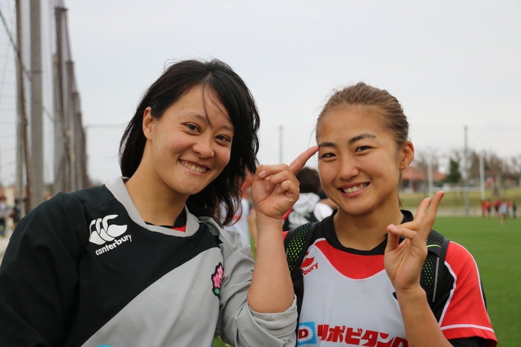 こちらの2人は、幼なじみの鈴木彩香選手(左)と山口真理恵選手(右)。午前のトレーニング終了直後に撮影しましたが、カメラを向けると明るい笑顔を見せてくれました。