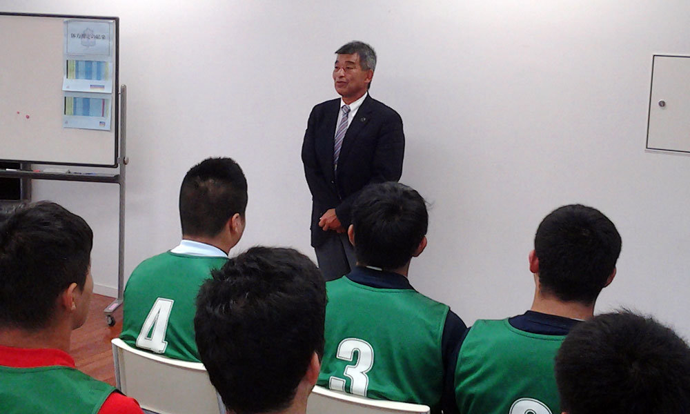 流通経済大学に集合した選手たちは身体測定を終え、開講式に臨みました。