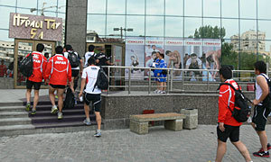 その後チームはバスで、明日試合が行われるアルマティ・セントラルスタジアムへ。