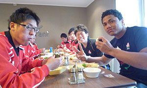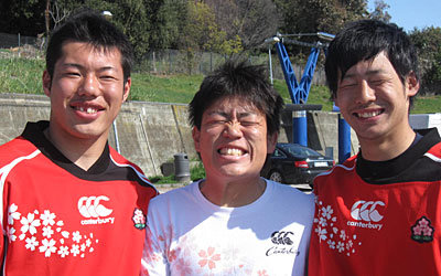 「イタリア・フランス遠征」レポート‥‥1 ■高校代表遠征16日目:2012年3月26日(月) 昨日の勝利から一夜明け、今日はトゥールーズ市内観光に出掛けました。午前中は地元のラグビースタジアム、スタッドトゥールーザンを見学しました。所属選手もトレーニングしており、フランス代表キャプテン・デュソトワールとの記念撮影も実現しました。 午後は市内中心部に移り、ショッピングや観光を楽しみました。 明日の午前にはトゥールーズからミュンヘン経由で日本へ帰国します。 フランスで称賛を受けたチームがいったん解散してしまうのは大変寂しく感じますが、地元の方々やたくさんの方々の支えで素晴らしいツアーになりました。 スタッド・トゥールーザンのグラウンドにて グラウンドで記念写真 フランス代表キャプテンのデュソトワール氏と スタッフもデュソトワール氏と 【選手紹介】 今回は、ハーフ団&バックスリーのメンバーです。今年の強みであるフラットアタックのタクトを握るハーフ団、そして最後の仕留めを担うバックスリーです。 金子峻大:JAPANの高速ATを生み出すパスワークで勝利に貢献します。 湯本睦:テンポとスピードで試合の流れを作り勝利を掴みます。 合谷和弘:自分のやれることを最後までやり遂げます。 山沢拓也:トライをとります。 久内崇史:体を張ったタックルと持ち前のスピードでチームの勝利に貢献します。 近藤秀人:爆走 松井千人:電光石火のスピードで相手を翻弄します。 重一生:いつものように自分らしいダイナミックなプレーを心がけます。 ハーフ団・山沢選手・金子選手・湯本選手・合谷選手 カメハメ波! WTB/FB陣・重選手・久内選手・近藤選手・松井選手 王子様? ■高校代表遠征15日目:2012年3月25日(日) 本日朝にサマータイムに変わり、日本との時差も8時間から7時間に変わりました。 朝9時30分に起床し、10時から散歩・ストレッチと試合に向けての調整を進めました。その後プレマッチミールとして、通常の朝食に加えて、おにぎり・焼うどんを食べました。 本日最終戦は総力戦となることが予想され、選手・スタッフ全員が日本食からエネルギーを蓄えました。 ビッグストレッチ プレマッチミール ジャージ授与式では、前田団長・松井監督そして木村主将を中心に最終戦を勝利で終えることを誓い、選手・スタッフ一丸となって試合に臨みました。 試合は、Stade L'Unionで行われ、U19Toulouse academyとの対戦でした。Toulouseでの事件(トゥールーズのユダヤ人学校で発生した銃乱射事件)の被害者への黙祷を行いキックオフとなりました。Toulouse在住の日本の方も含めた多くの観客の前で、ジャパンはテーマとする4Hとフラットアタック・シャローDFを見せつけます。前半は体格に勝るToulouse academyがFW・オフロードパス中心に攻めますが、ジャパンも激しいタックルで対抗し20-3で折り返します。 後半に入るとジャパンのフラットアタックや順目アタックから5Tをあげ51-10でノーサイドとなりました。第三戦の勝利と、ジャパンのスピードあふれるラグビーがToulouseの方々に残した印象は大きなもので、今回の試合でもジャパンのプレーには大きな歓声と喝采が送られました。 ジャージ授与式 シャローを意識したアップ 試合前のロッカールーム 試合前の黙祷 素早いアタック シャローDF ノーサイド 両チームでの記念撮影 健闘をたたえあう両チーム 試合後のアイスバス 試合後、本日も盛大にアフターマッチファンクションが行われました。U19Toulouse academyとお互いの健闘をたたえあうとともに、Toulouse滞在中に大変お世話になったL'Unionの方々に感謝の意を伝えました。特にリエゾンとしてお世話になったジャン・ポールに謝意としてジャージを贈呈し、チームソング『楕円桜』をおくりました。 ホテルに戻り、前田団長から改めてねぎらいのお言葉をいただきました。 本日で遠征の試合は全て終了しました。明日軽いリカバリーと、観光を行い帰国への準備となります。 アフターマッチファンクション アフターマッチファンクション2 楕円桜斉唱 ■高校代表遠征14日目:2012年3月24日(土) 遠征14日目、最終戦へ向けてチーム高校JAPAN最後の練習日、朝はストレッチ等の体ほぐしを入念に行い、楕円桜の合唱練習も行いました。 午前は、明日の試合日程と同様にダイナミック・ストレッチを行い、午後の練習準備としました。 午後は試合会場の見学後、練習グラウンドにてチーム高校JAPANの最後の練習を木村キャプテン中心に、キャプテンズランを含めて行いました。フランス代表との試合の修正点や自分達の強みを確認していました。 とにかく今日は天気が良くて、日の当たる所では自然に汗ばんできて春真っ盛りです。フランス・トゥールーズでも桜を見ることができ、まさに春を実感しますが、明日の最終戦でチーム高校JAPANが楕円桜を満開にしてくれることを期待しています。 宿舎近隣の桜の木 朝の楕円桜の合唱 最終練習前の選手トーク 最終練習FW 最終練習BK 最終戦の会場 【選手紹介