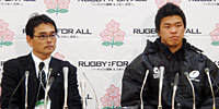 帝京大学の岩出監督(左)と森田キャプテン |
