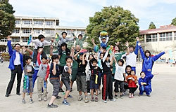 日時: 2010年10月23日(土)13:00~14:15 場所: 我孫子市立高野山小学校・校庭 主催: 我孫子市青少年相談員連絡協議会・天王台支部 後援: 我孫子市ラグビーフットボール協会 協力: NECグリーンロケッツ、あびこラグビースクール 毎年恒例の「高野山小ふれあい祭り」において、青少年相談員連絡協議会・天王台支部様との協同並びに、あびこラグビースクールのスタッフ、スペシャルゲストのNECグリーンロケッツ選手のご協力を得て、今年も昨年同様に『タグラグビー体験コーナー』を実施いたしました。 スペシャルゲストでお手伝いしていただいたNECグリーンロケッツの選手は、磯岡選手、吉村選手、山本秀選手、釜池選手の4名です。また、この日使用したタグ一式及びボールはNECラグビー部様よりお借りしました。 皆様、お忙しい中お手伝いいただき感謝いたします。 この日は秋晴れの良い天気で、運動を行うには最適の気候でした。今年は校庭でのイベント使用時間制のため、正味1時間ほどの実施でしたが、多数の生徒さんが集まりました。メニューは、定番の「タグ取りゲーム」と「トライゲーム」。 大きなグリーンロケッツ選手と遊ぶ機会が持てて、ラグビー未経験の生徒さんも、安全で楽しいタグラグビーを体験していました。 お手伝いいただいた皆さん、大変お疲れ様でした。 我孫子市ラグビーフットボール協会は、子供から大人まで、安全で楽しくプレーできるタグラグビーの普及に努めてまいります。 ご協力いただきました、あびこラグビースクールの皆様に感謝いたします。