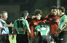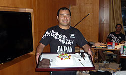 「上海トーナメント」スケジュール /7人制日本選抜メンバー /試合結果 ●9月5日(日) 決勝トーナメント1回戦、香港代表戦は開始2分でキャプテン アリシがイエローカードでシンビン(2分間退場)。シンビンの場合、席に着いてから2分間が加算されるため、急いで戻らなくてはなりませんが、その間に3連続トライを許し0-17のビハインド。しかし、アリシが戻って7人になった後は汚名返上の1トライを返し、後半も3連続トライで大逆転勝利した日本選抜。 続く準決勝の相手は韓国代表。昨年のリベンジと行きたかったのですが、急遽降り出した豪雨にも呑み込まれ敗戦。終盤に出場した高校生の布巻選手が個人技で持ち込み30mの独走トライを決めたプレーは次戦につながります。 気を取り直して挑んだ3位決定最終戦、相手は予選で惜敗したマレーシア代表。先発7人中6人のフィジアンにリザーブにも3名ほど擁するマレーシアフィジアンチーム相手に、前半は高井選手のトライ等でリードも互角の戦い。後半その高井選手がプロフェッショナルファウルを取られシンビン。その2分間を6人で戦う時間を凌ぎ、逆にトライを決める。後半4分に園中、布巻を投入した後、その2人が元気よく前に出てチームを鼓舞。最後は坂井が持ち込んで試合を決定するトライ。12チーム中3位で上海セブンズ大会を終えました。 優勝は成長著しい中国代表を抑えた韓国代表で上海大会2連覇達成。年々各チームのレベルが上がってきているのも2016年に7人制ラグビーがオリンピック種目に決定したことが大きい。今大会での目標は優勝でしたが、学生主体のヤングメンバーが日々成長していく姿を目の当たりにして、最後まで諦めることなく戦ってくれた選手全員に先ずはありがとうと言いたい。また、このチームのキャプテンとして選手の模範になったアリシ選手、また南川トレーナーのケア、選手としても出場した岩渕コーチのおかげでジャパンがひとつになれたこともチームとして良い経験が積めました。 最後にリエゾンとして活躍して頂いた南さん、伊佐さん、チャンさん他、上海に在住するたくさんの日本人大応援団が我々をサポートして頂いたことに心から感謝いたします。ありがとうございました。 選手選考MVP MVP:アリシ・トゥプアイレイ 監督賞:坂井克行 トライ王:長野直樹 6トライ 決勝T初戦前 相手は香港代表 アイスバス ベンチ ロトアヘアのトライ 韓国代表戦前 ファンとの交流も積極参加 坂井選手と園中選手 マレーシア代表戦前WU 日本選抜 ●9月4日(土) 大会初日、6時半にプールで身体を起こした後6時50分朝食。8時15分出発の予定が、8時半過ぎになりました。海外に行くと、このような事態も起こります。 昨年は大会前日深夜に到着したこともあり、上海事情がわかりませんでしたが、交通ルールが日本と大きく違います。右側通行で車優先。歩行者優先でないので、目の前の信号が青でも左右を確認しながら渡らないといけません。また右折に限っては信号無視も大丈夫な国なのです。 試合の方は、初戦シンガポール代表に快勝も、次戦マレーシア代表に惜敗。3戦目にタイ代表にも快勝しましたが、2勝1敗でグループ2位通過とあって、明日は1回戦から他グループ1位の香港代表と戦いますが、しっかり修正して挑みたいです。 ウォームアップ前 ジャージ授与式 初戦は9時40分KO 園中独走トライ ゴールキックは坂井 ベンチ ボールに絡む岩渕コーチ 予選試合前 ハーフタイム アリシの突破 ●9月3日(金) 午前中に大会会場を視察した後、キャプテンズランを行いました。午後はフリーにして体調管理に努め、南川トレーナーによる治療ケア。その間、監督との1on1ミーティングを行いました。各自の思い、大会に挑む姿勢、目標、不安等さまざまな角度で選手分析。明日が楽しみです。 ※南川トレーナー、本日バースデー ミーティングの最後にみんなでお祝いしました!! キャプテンズラン 南川トレーナー誕生日 ●9月2日(木) 午前中はフリー。午後は16時にプレマッチミールを用意して16:45出発。前回台風で流れていた「ラグビークリニック」を開催するため、アメリカンスクールに到着しました。中学から高校生まで約40人、男子はアリシを中心に、女子は私が指揮を執り、選手は男女に均等に分かれて一緒にプレーしましたが、時折笑い声が聞こえる程楽しくクリニックを行いました。最後に私から感謝のスピーチを延べた後、みんなのサインが入ったジャパンジャージを寄贈。責任者のSteve氏は「来年も是非来て欲しい」と、嬉しいお言葉を頂きました。 その後、地元チャンピオンチームとの交流試合は20:00キックオフ。新チームで実戦を経験できるのはこの試合が初めてです。7分×3セット行いましたが、結果勝利と内容はともあれ大会前に試合ができて良かったです。 アリシ臨時講師 アリシ、講師でも活躍 講師は村田監督 アメリカンスクールにてラグビークリニック 岩渕コーチもこの笑顔 レフリーはSteve 地元クラブと交流試合 練習試合後ペア