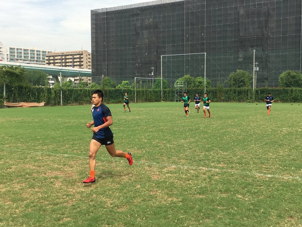 最後は恒例のフィットネストレーニング。セブンズの試合のスピードに近い強度で走ります。