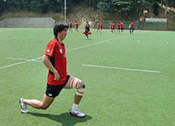 強化合宿スケジュール/7人制日本代表候補・7人制学生日本代表候補メンバー ●7月6日(火) 本日はポルトガル大会の初戦と同じコンディションで調整をということで、朝9:00からライトトレーニング。お昼からの試合に合わせて体を起こします。ジョギング・ストレッチを交互に繰り返しながら、体をほぐし、50m走を強度を変えて10本ほど走りました。 その後宿舎に戻り、朝食、休憩をとって、昼前からウォーミングアップを開始。12:00から流通経済大学選抜チームに胸をかりて7分3本の試合を行いました。 ジャパンの学生チームは、スピードとボールキープ力で勝り、ジャパンの学生チームの勝利。チームとしてのまとまり、コミュニケーションは、前試合、前々試合に比べ確実に成長しており、ポルトガル遠征での結果が期待されます。 本日で合宿は終了となりました。5泊6日、7人制代表のためにご協力を頂いた流通経済大学およびラグビー部の関係者の皆様に心より御礼申し上げます。おいしい食事と素晴らしい環境をありがとうございました。 ジョギングでゆっくり体をほぐす 体幹強化は毎日の日課です 徐々にスピードをあげていきます 判断を早く 村田監督のSH鶴田へのマンツーマン指導 試合間のブレイクでしっかりと課題修正する 最後は全員で記念撮影 ●7月5日(月) 午前中はディフェンスにフォーカスしてトレーニングを行いました。午後の試合を想定しながら、2対3、3対4、6対7と最後にはグラウンドの全面使ってしっかり走りこみを行いました。午後は流通経済大学の皆さんに協力いただき、練習試合を3試合実施。 2試合目からは、埼玉工業大学のパエア・ミフィポセチ選手とロトアヘア・ポヒヴァ選手、山梨学院大のマーフィー・レイルア選手に流経大チームに入ってもらい、対外国人選手を想定して試合に臨みました。ブレイクダウンで激しい攻守の交代がありましたが、プレッシャーを掛けてディフェンスをすることで、それが機能して完勝することができました。明日は合宿最終日となります。 ◎村田監督 「アジア競技大会候補選手が帰り、学生主体になったチームは、本日午後から流通経済大学ラグビー部を相手に3試合(6ハーフ)を行いました。 試合間の休み時間も少なく、選手にとっては非常にキツかったと思われますが、世界を相手に戦う為には必要な試合数でした。 今日の試合のMVPを決めるならば、CTB(途中SO)に入った坂井選手。キック、タックル、アタック&ディフェンスに率先して前に出ていくプレーは、チームを鼓舞し、押し上げくれました。また、フォワードの園中&高井の両選手もフィジーでの経験が活き、随所に好プレーを披露していました」 しっかり体をほぐす 正海選手はリハビリ中 試合を想定してしっかりと体をあてる 村田監督から球出し 積極的に前に出ることを意識 体幹をしっかりと鍛える 試合前のダイナミックストレッチ 体を当てて試合前に臨む ハーフタイムで岩渕コーチからの指示 村田監督からの指示 原田レフリーと試合内容について意見交換 ●7月4日(日) 選手達のコンディションと練習内容を考慮して、本日の午前中はオフ。午後のトレーニングと試合に備えます。学生日本代表候補選手達も午後から合流。午後は下農S&Cコーチが来てフィットネステスト、40m、立ち幅跳びの計測を行いました。今回の測定は、今後のアジア大会に向けての目標値の設定基準となる重要な計測であり、選手達もそれを意識して計測に臨みました。 テスト後は休憩をはさみ、アジア大会組と学生メンバーとで試合。学生主体のメンバーがどこまでトップリーグの選手が多数いるアジア大会組にむかっていけるかを試す良いチャンスとなりました。お互いにミスが多く、結果としてアジア組の勝利となりましたが、明日、明後日の試合でどこまでチームとしてまとまっていけるかがカギとなります。 本日でアジア登録メンバーは解散となり、明日から学生主体チームが中心となります。 ◎村田監督 「ゲームは学生主体チーム対アジア登録メンバーで2試合行いましたが、それぞれに持味が出た試合でもありました。しかし、チームとしてはまだまだで、伸びしろはたくさんあります」 試合前に村田監督から 今回の試合に向けて 試合直前 試合間のブレイクでのコミュニケーション 築城キャプテンと宇薄ゲームキャプテンから 試合後、堀江レフリーか感想とアドバイスを頂きました ●7月3日(土) 昨日、国立スポーツ科学センターで行われたメディカルチェックを経て、本日3日より流通経済大学での合宿が開始されました。 いよいよグラウンドでの練習初日、ではありますが、本日は7人制日本代表候補の集合を利用して、NHK教育テレビの収録が行われました。 収録されたのは、「テレビスポーツ教室」 もちろん、内容は7人制ラグビー。 練習方法などを解説した、基礎編となります。 パススキル、グリッドを使ったハンドリングスキル、1対1のディフェンス、など基礎的な様々なスキルが、7人制日本代