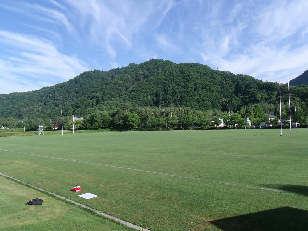 爽やかな青空の下、素晴らしい天然芝の北海道バーバリアンズ定山渓グラウンド。