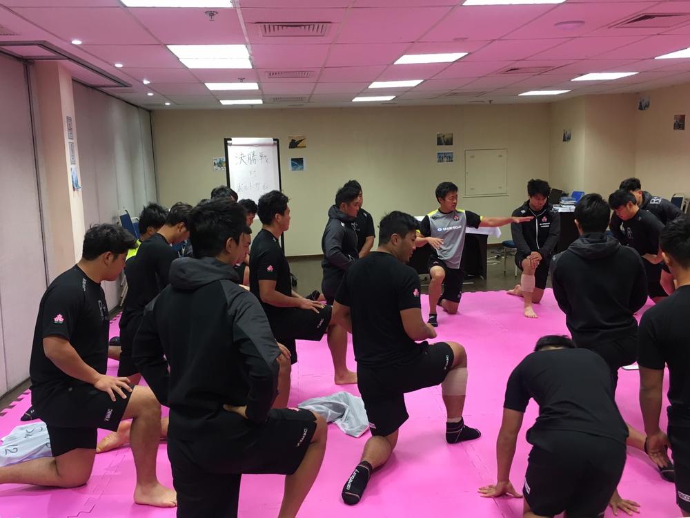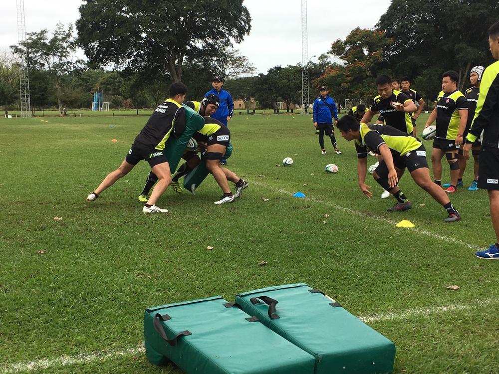 本日の練習テーマは、「ディフェンス」。滞在3日目からは現地に慣れるため、ラグビーモードにシフトし、練習強度も上がっています。