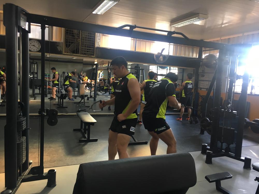 グラウンド練習のあとは、フォワードとバックスに分かれてジムセッションでした。