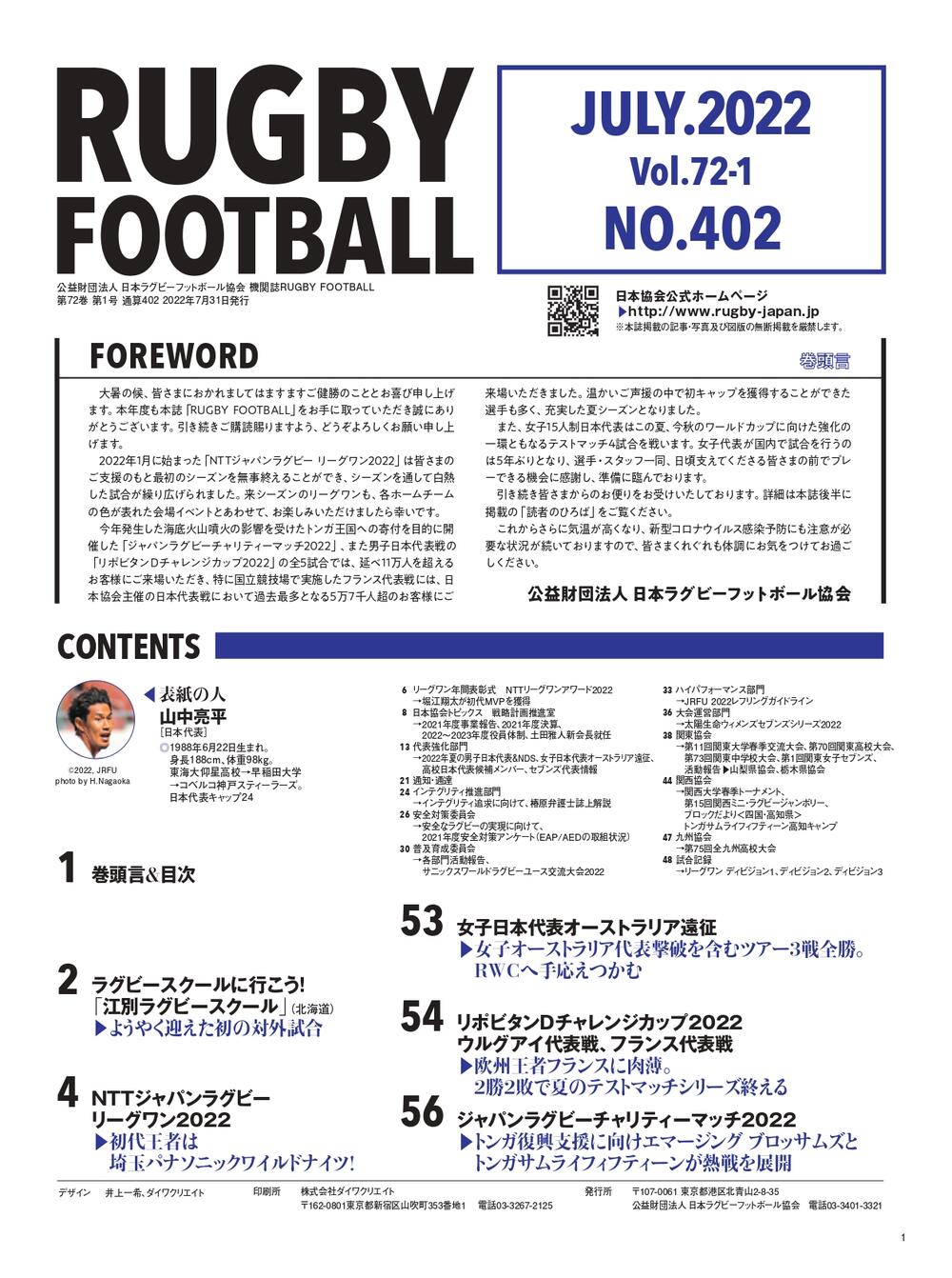 機関誌「RUGBY FOOTBALL」の72巻(2022年度)1号が発刊されましたのでお知らせいたします。