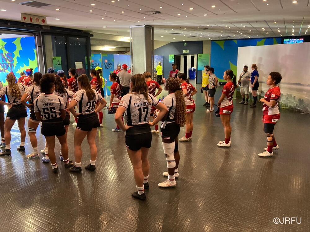 内海キャプテンの言葉の通り、「初戦からサクラセブンズのラグビーで圧倒」できるよう、選手、スタッフ全員でまずは最高のウォーミングアップに臨みます。