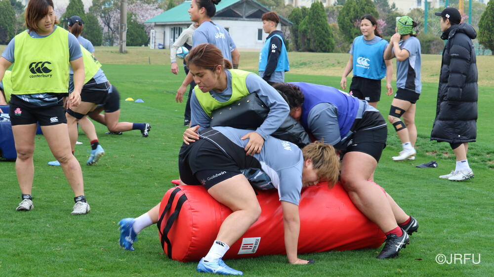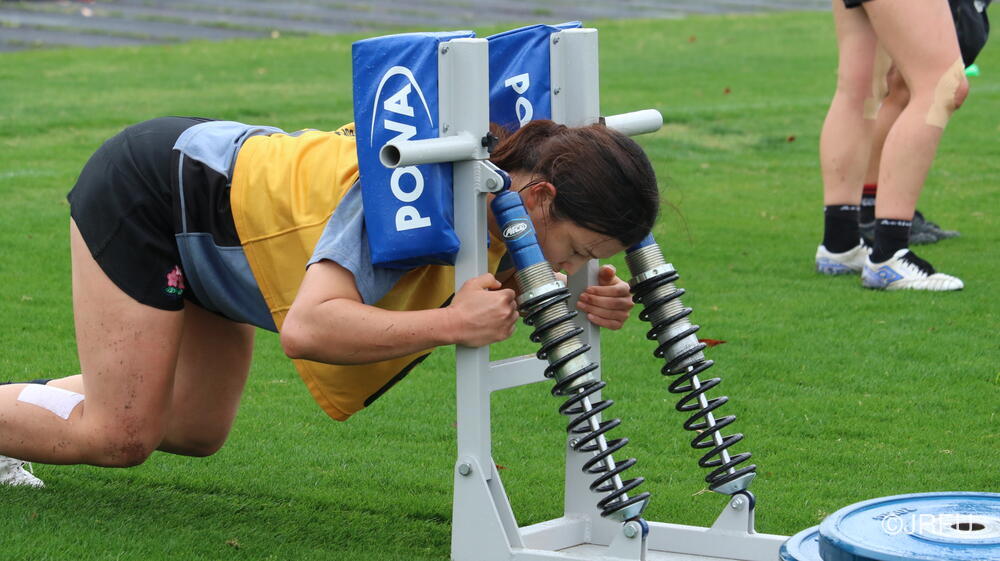 フィールド練習では、まずFWとBKに分かれてユニット練習をしました。FWはラインアウト、スクラム、モールを、BKはスピードトレーニングをしました。