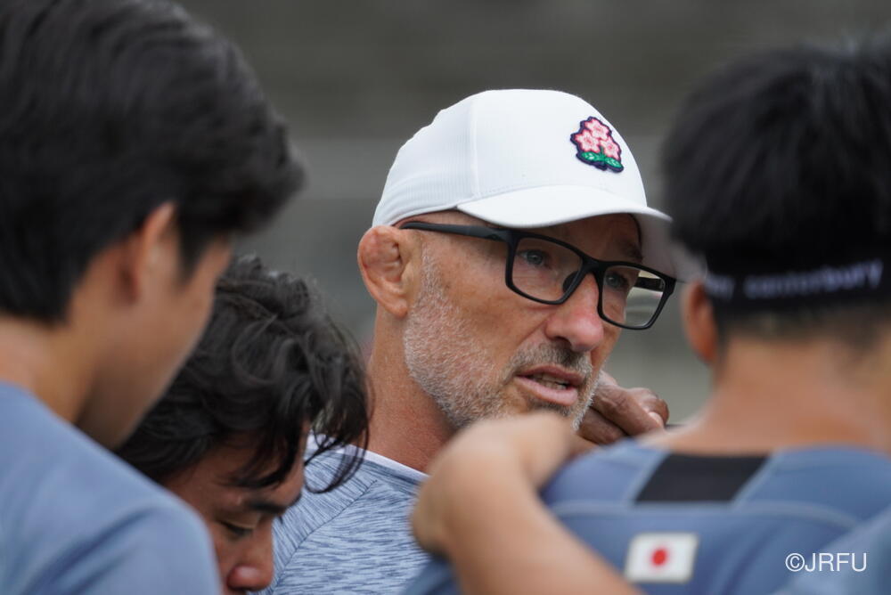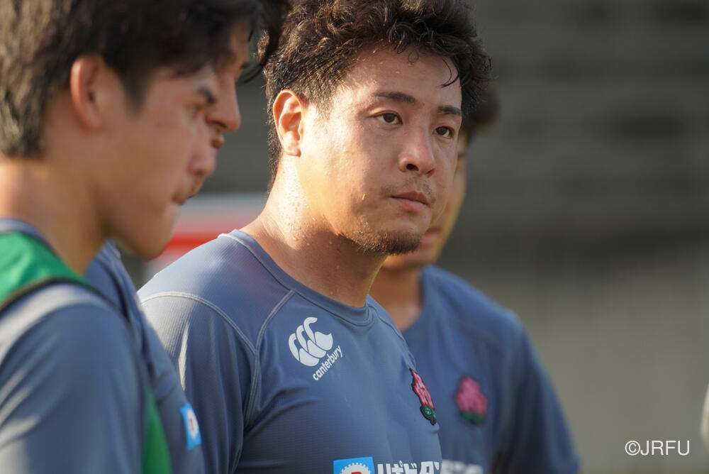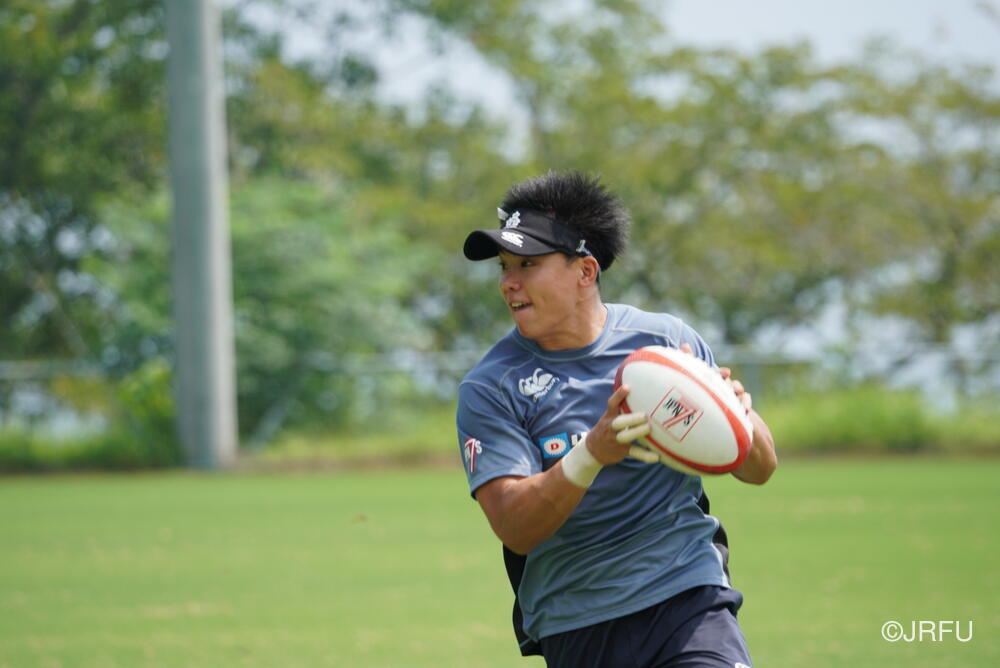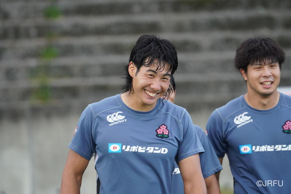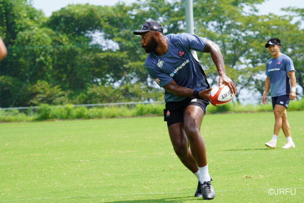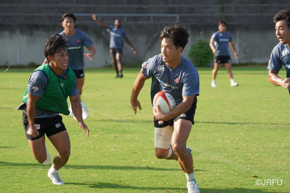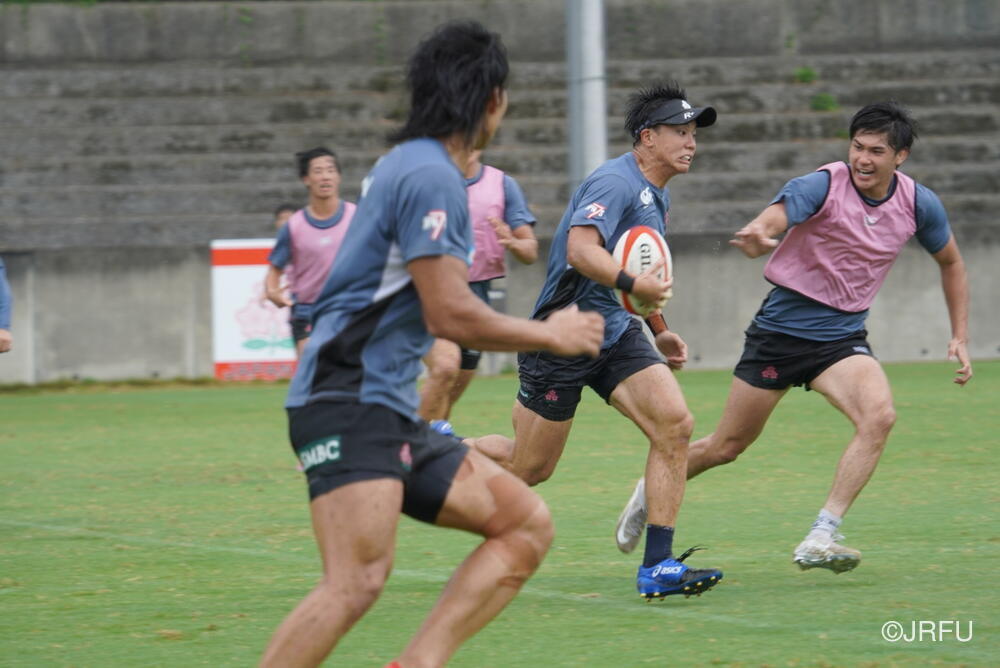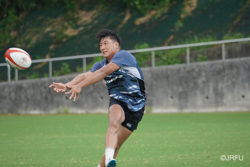 午前中はジムで下半身を中心にトレーニングを行い、その後のフィールドでは、時折雨の降る中でブレイクダウンやディフェンスの基礎に取り組みました。