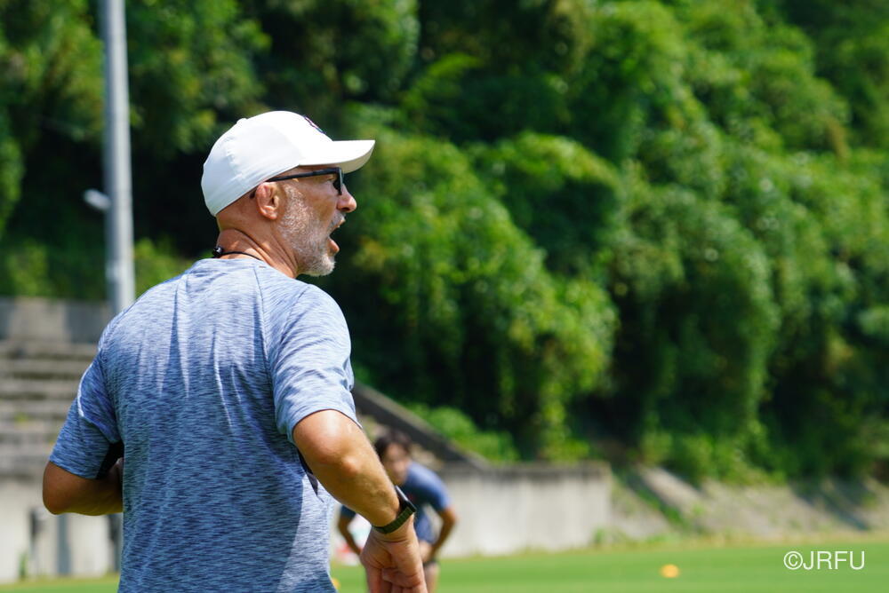 午後は蒸し暑い晴天のもと、引き続きディフェンスを中心に、より実践的なシチュエーションでの練習を実施。フィットネス要素も加わり、体力的に厳しい状況の中でも選手たちはアタック・ディフェンス双方でハードワークを見せ、充実した練習となりました。