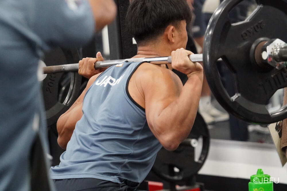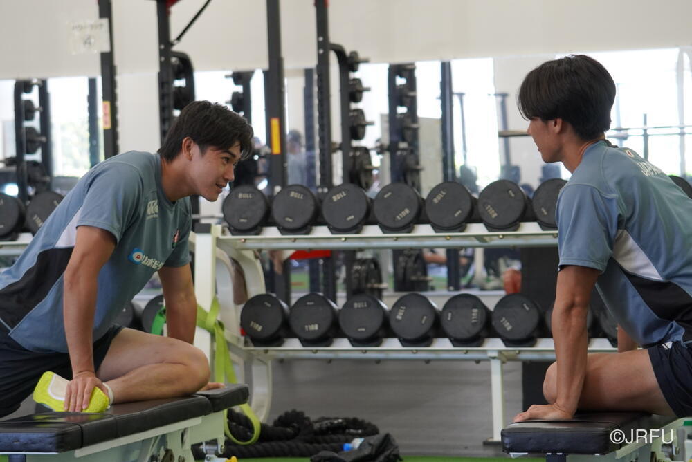 午前はジムで上半身を中心にトレーニング。チームが始動した当初に比べて、より重い負荷に挑戦する意識の選手が増え、メンタル・フィジカル面での成長が見られる内容でした。