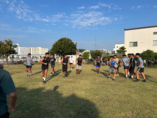 8月22日の朝も海の見える公園に移動して、コミュニケーションゲームを行い、リラックスした雰囲気の中でウォークスルー形式でATプランを確認しました。昨日より選手間の会話の密度が格段に上がっていました。