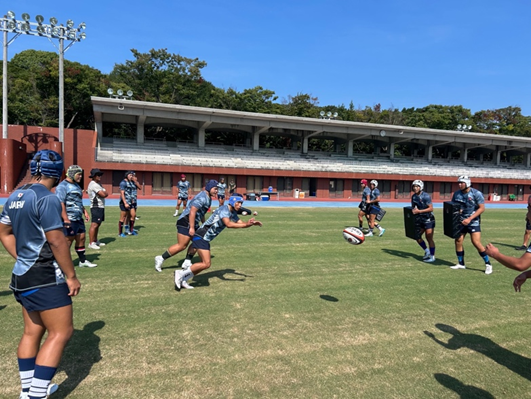 午前の練習を終えて、国内での練習が最後となりました。関東学院大学ラグビー部の関係者の皆様、関東学院大学六浦高校ラグビー部の皆様のおかげで実りある直前合宿となりました。
