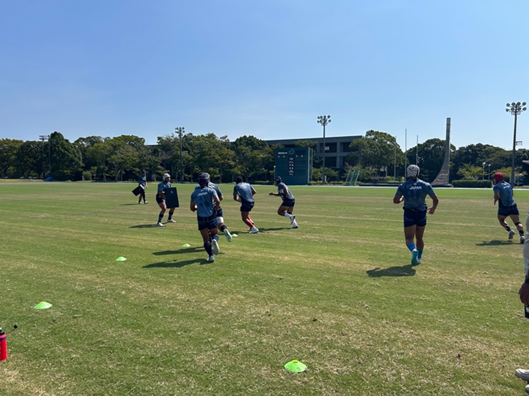 朝のセッションは海の見える公園に移動して、爽やかな潮風を感じながら体を使ったアイスブレイクを行い、リラックスした雰囲気の中で選手同士の距離を縮めました。その後、ウォークスルー形式でATプランを確認し、午前の本格的なトレーニングに備えました。