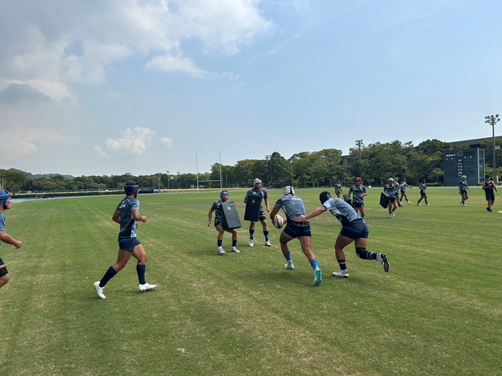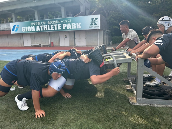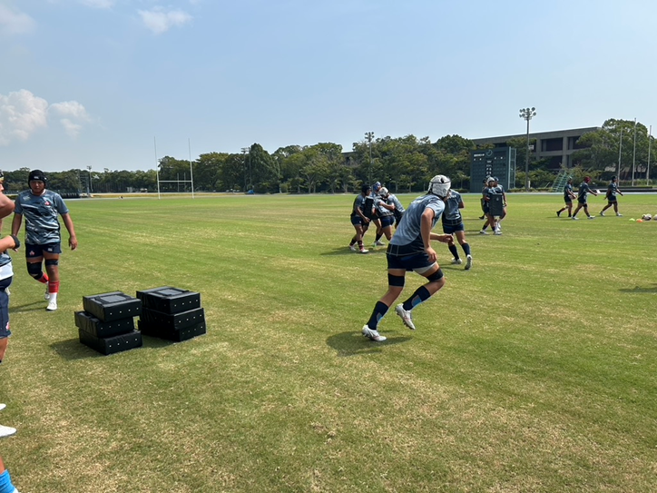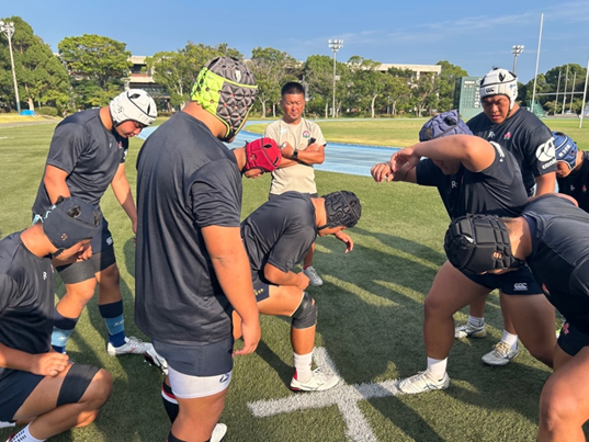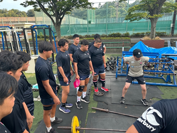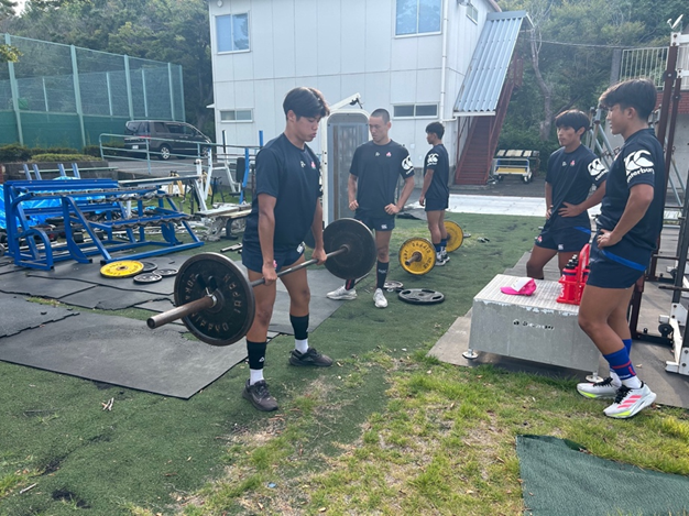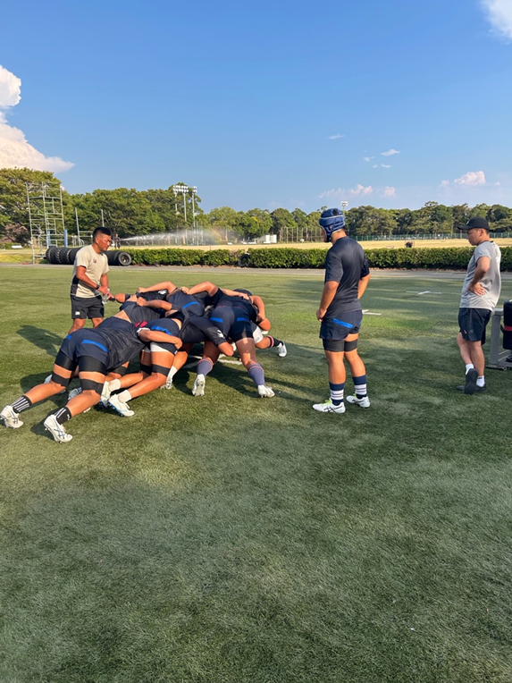 午後のセッションでは、まずウエイトトレーニングとユニットに分かれ、FWはスクラムとラインアウトの反復練習を行い、姿勢や組み方を徹底的に確認しました。