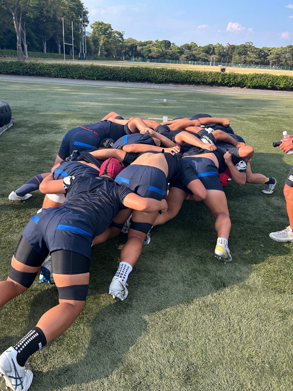 朝食後に会場を関東学院大学に移し、関東学院大学六浦高校ラグビー部さんにご協力いただき、相手のついたユニット別の練習を通してポジションごとの連携や精度を高めました。最後に実施したADでは「JAPAN CYCLE」の確認をしました。U17日本代表のスタイルを体現する充実した時間となりました。