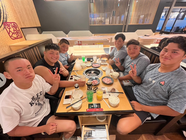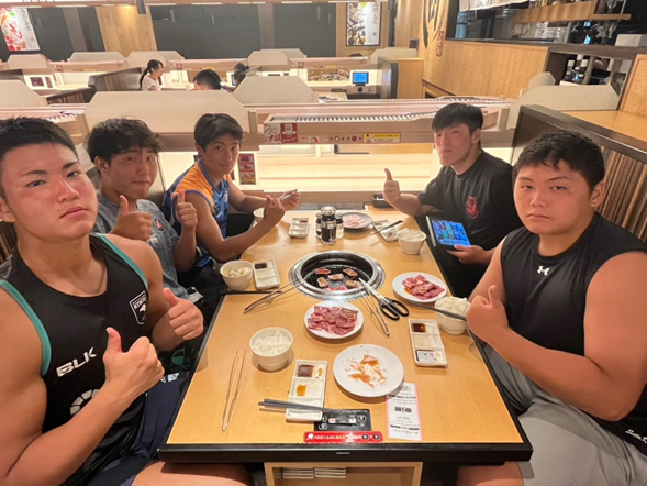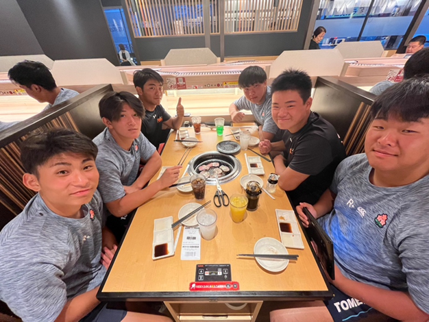 夕食はチームディナーで焼肉の食べ放題を楽しみながら英気を養いました。仲間と笑顔を交わし、食を通じて結束を深めた大切な時間となりました。