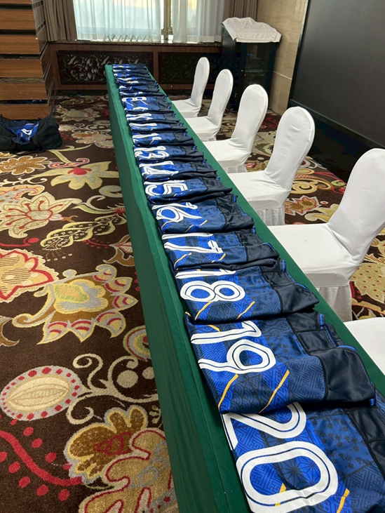 朝食後、第二戦目の中国戦に向けて山口団長と大島監督から日本代表2ndジャージーが授与されました。選手達の表情は初戦に勝ち、『今日の一戦でより「JAPAN CYCLE」のレベルをあげよう』そんな、自信と向上心に満ち溢れていました。