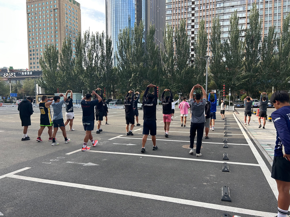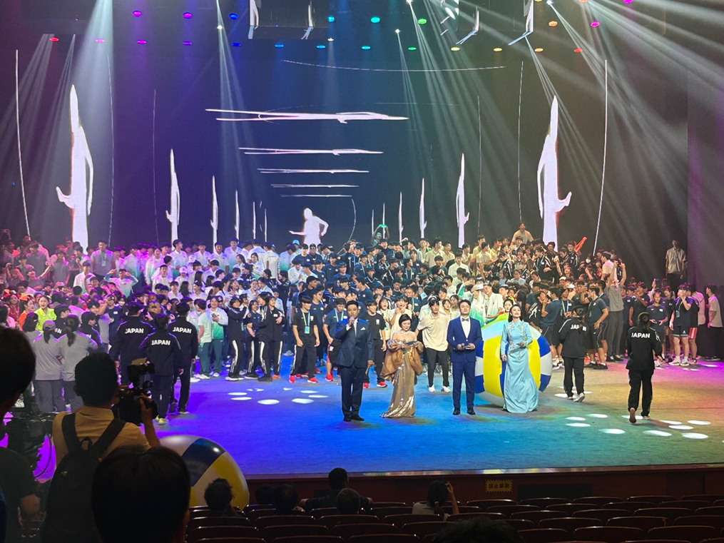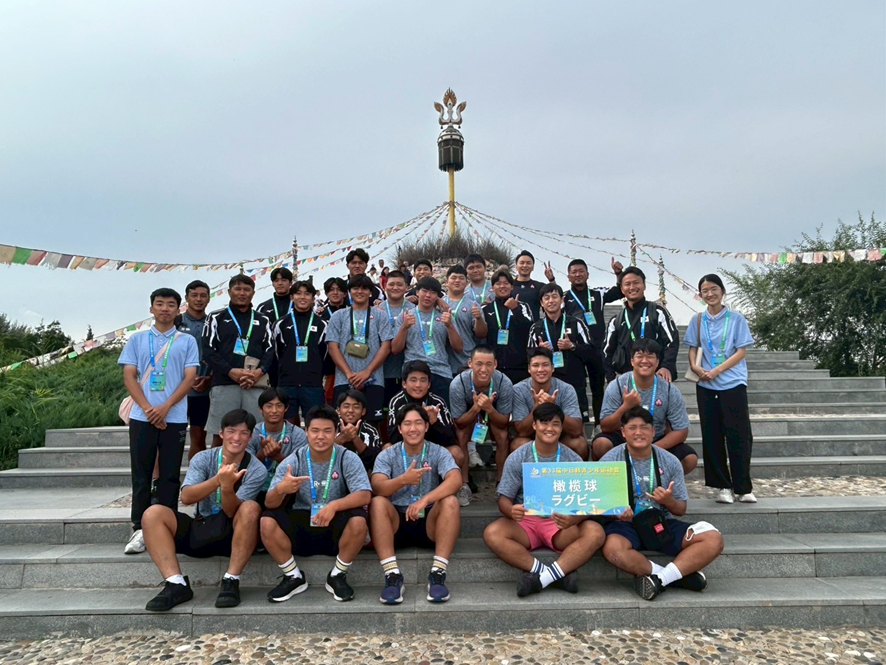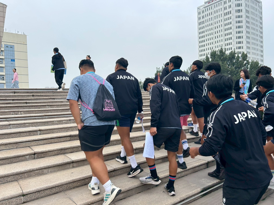 試合終了後は両国合同で記念写真を撮りました。夕方から日中韓3国、全競技合同で開会式を行いました。そして、明日は中国代表との試合です。