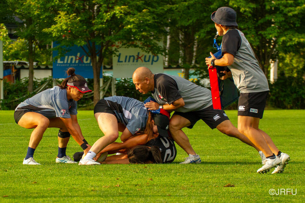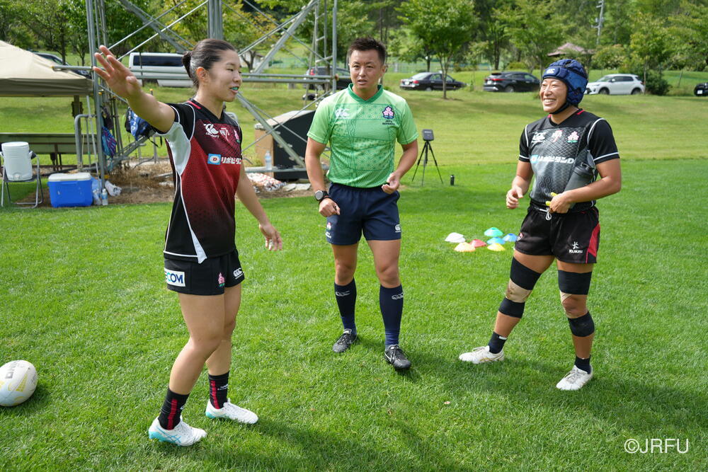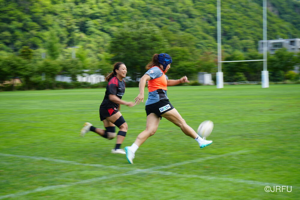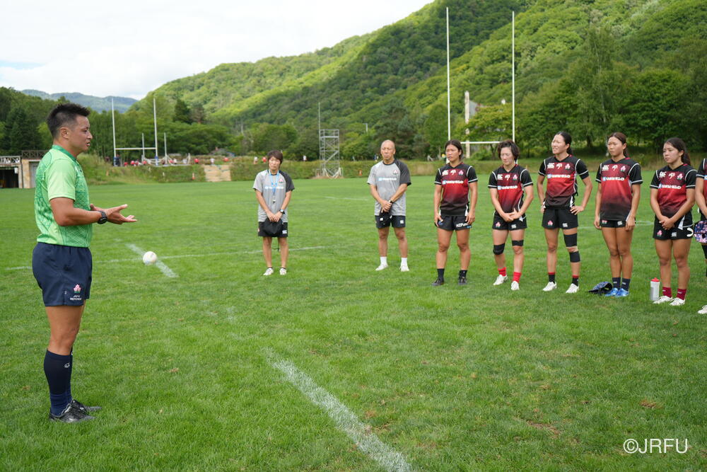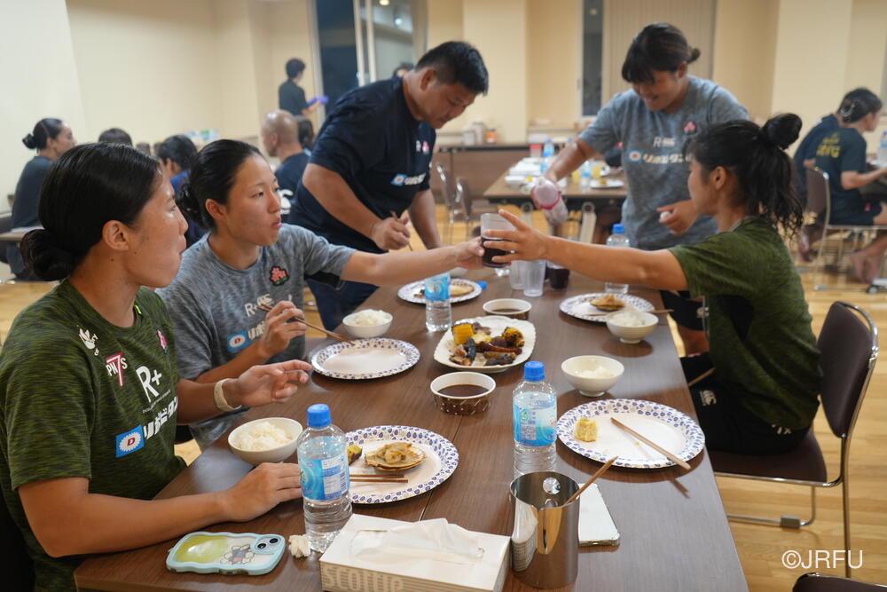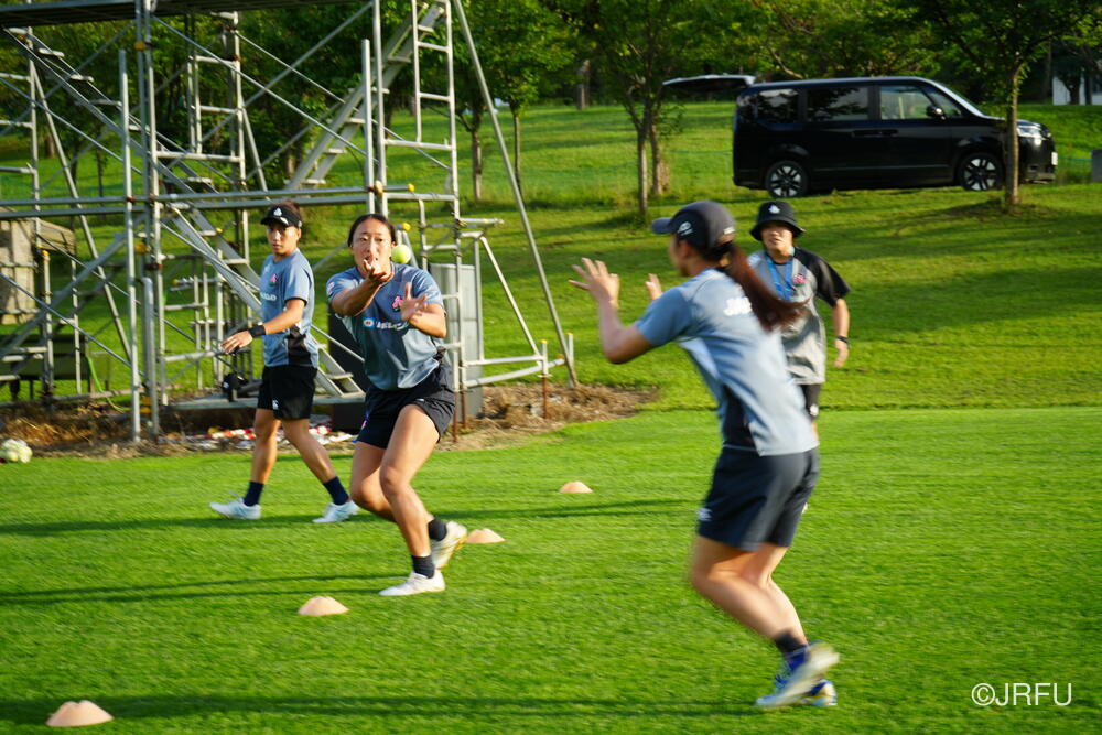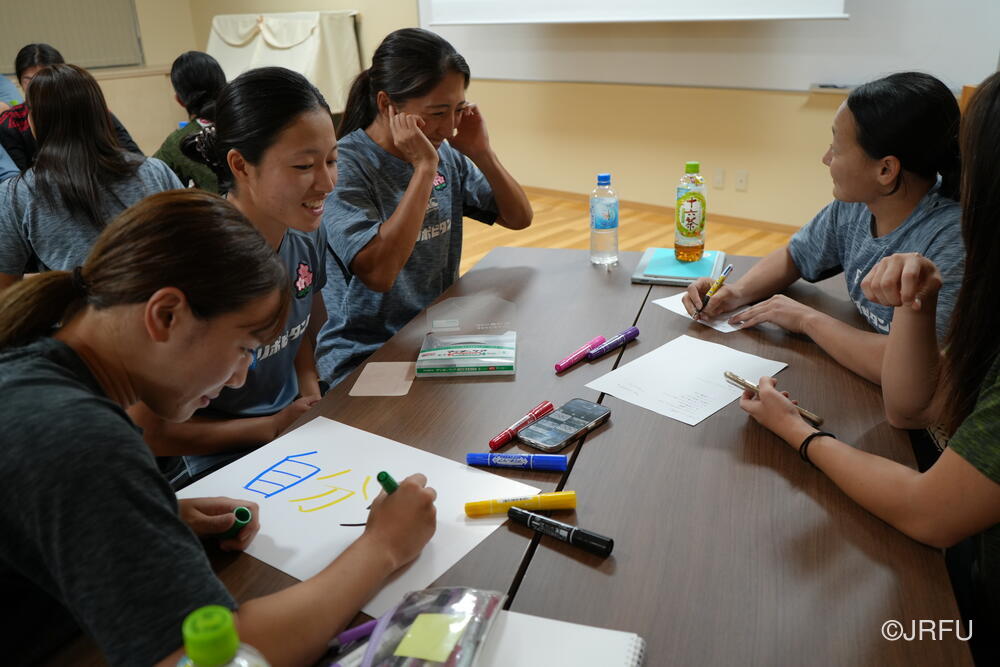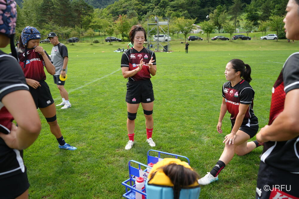 午後は、気持ちを切り替えてフィールドセッションです。FWセッション、キックオフの練習をした後、大会前日を想定したキャプテンズランを行いました。前半に取り組んできたサクラセブンズのベーシックな部分を明日の紅白戦で発揮できるよう、各チームで準備しました。夕食後も、チームごとでミーティングを行い、明日の試合に向けて最終確認をしました。