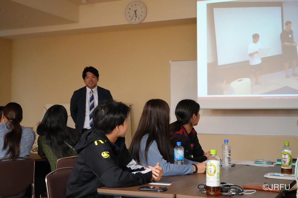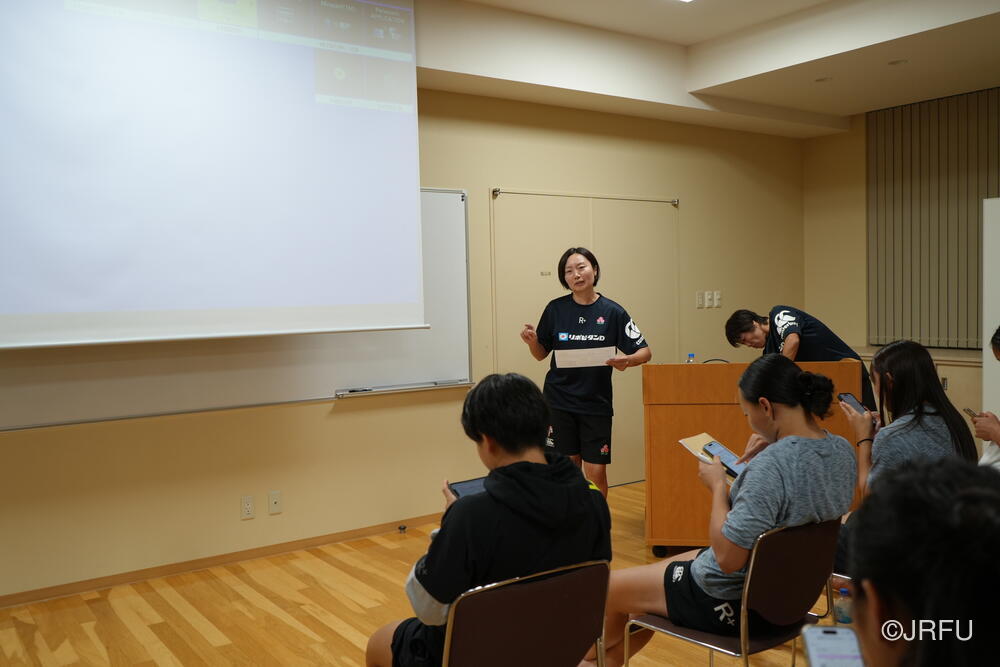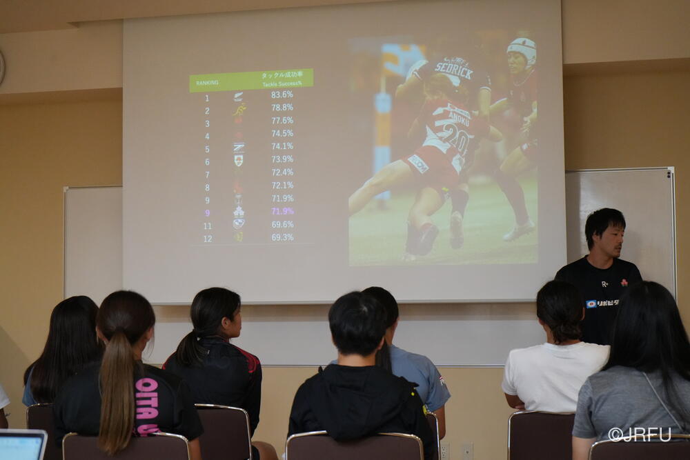 午後の練習前には、分析の中島さんより、昨シーズンのワールドシリーズのデータを通して、サクラセブンズのラグビーの強みについて、共有していただきました。