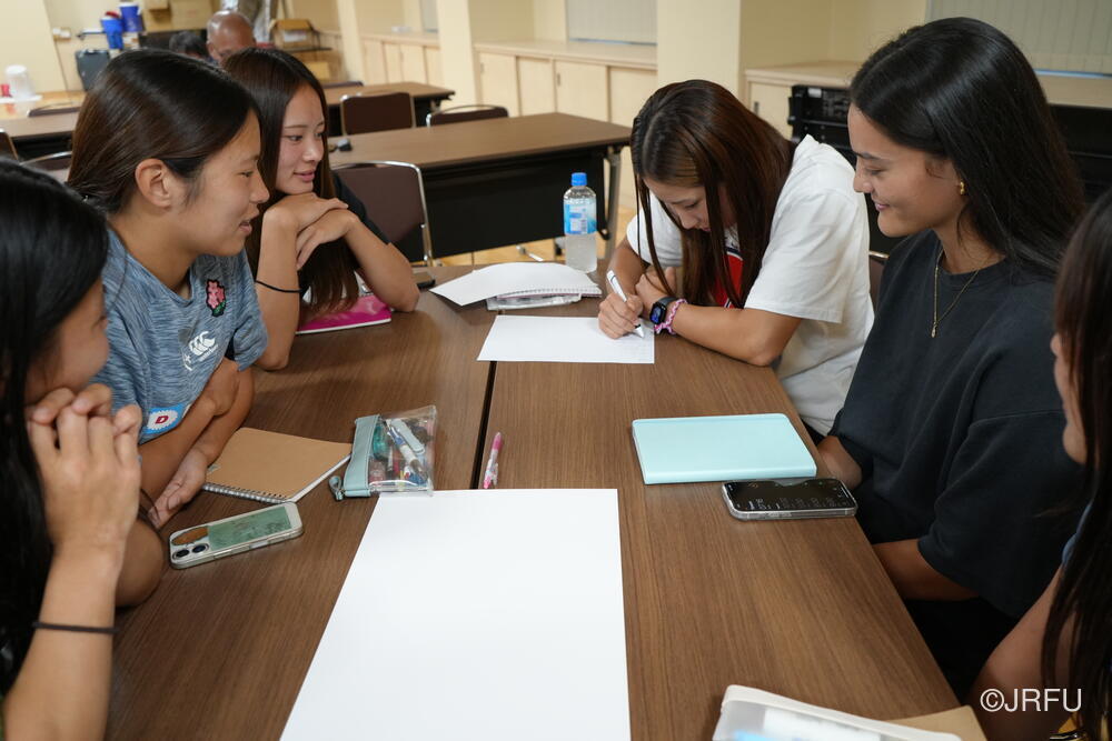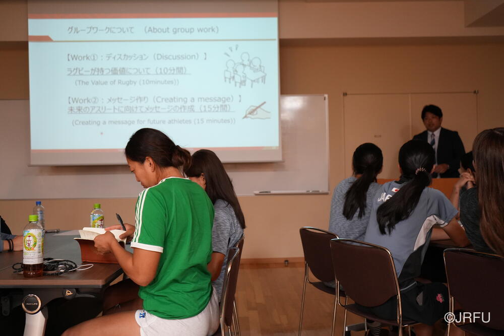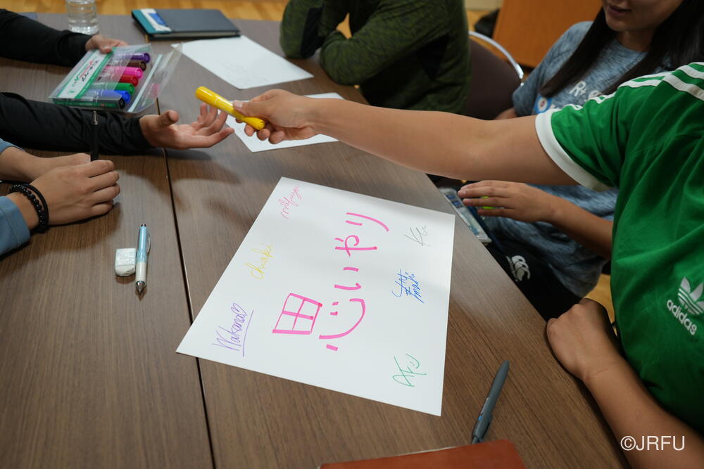 夕方にはクリーンスポーツのレクチャーを受け、グループごとにまとめた言葉を用紙に書いて発表をしました。みんながラグビーを通して社会に伝えたいメッセージが伝わる素晴らしいプレゼンテーションでした。