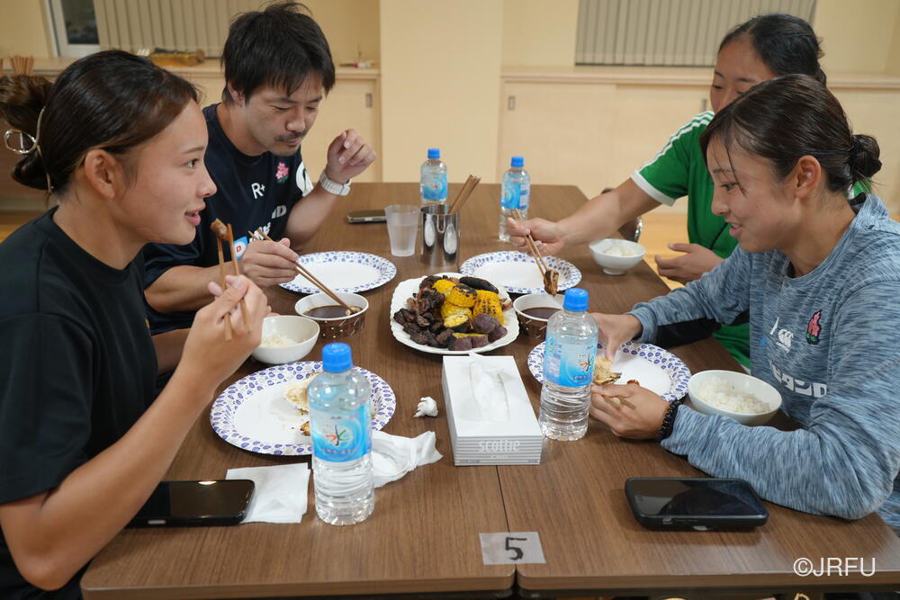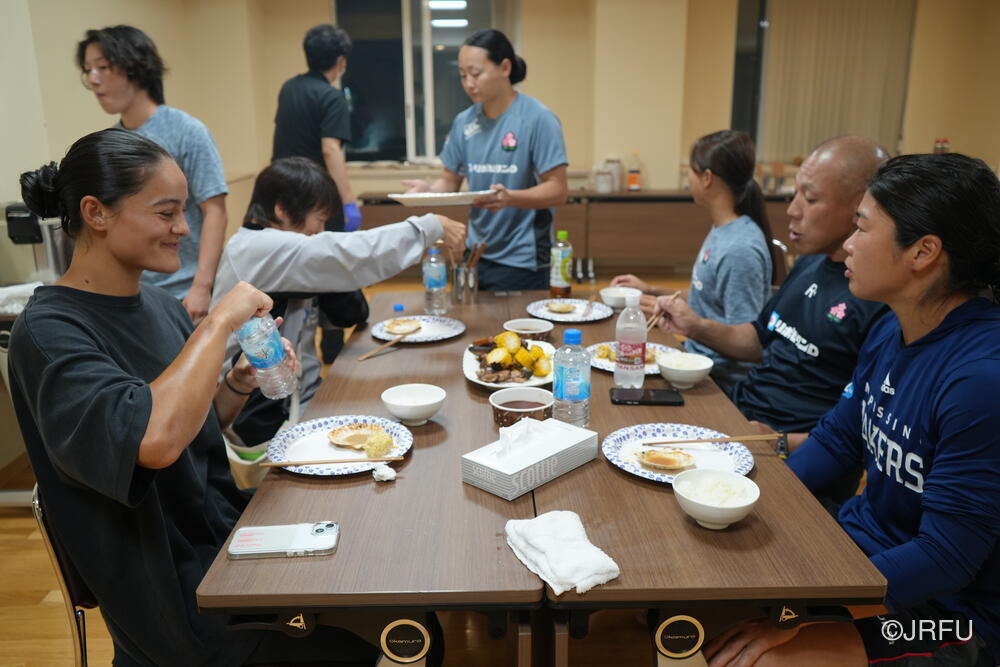 そして、今夜はサクラフィフティーンのワールドカップ第2戦目、ニュージーランド代表戦です。遅い時間ではありますが、今日明日は特別スケジュールで、同じ日本代表としてみんなで大きなテレビを囲んで応援しました。先制トライやチーム一丸となったモールには大興奮でした!第3戦もサクラセブンズ一同、応援しています!
