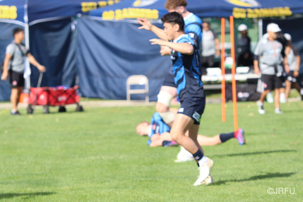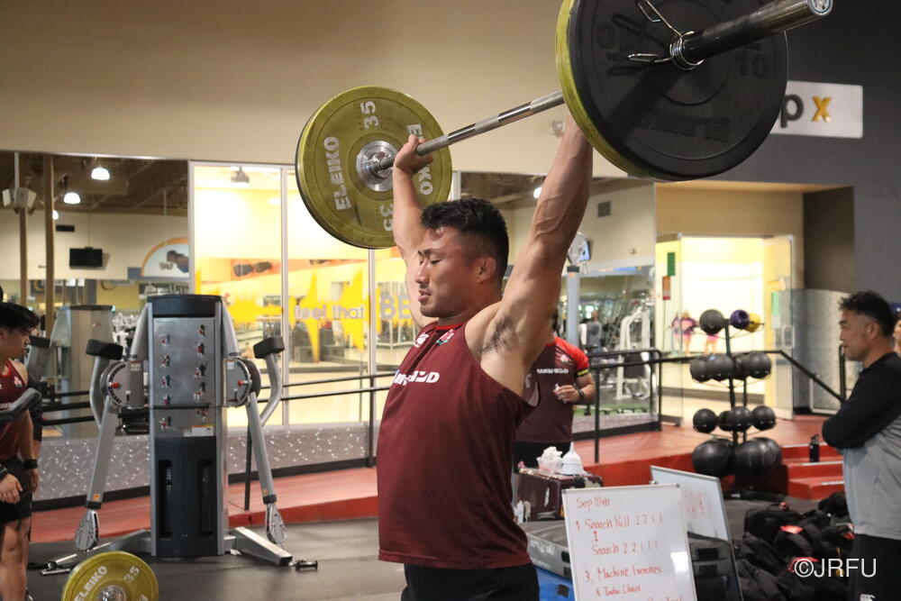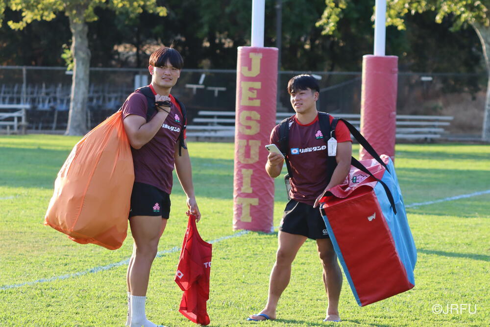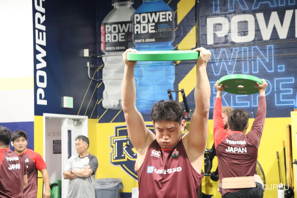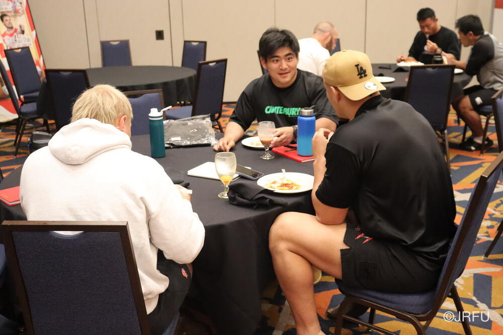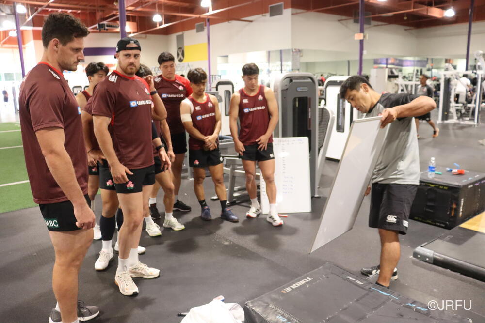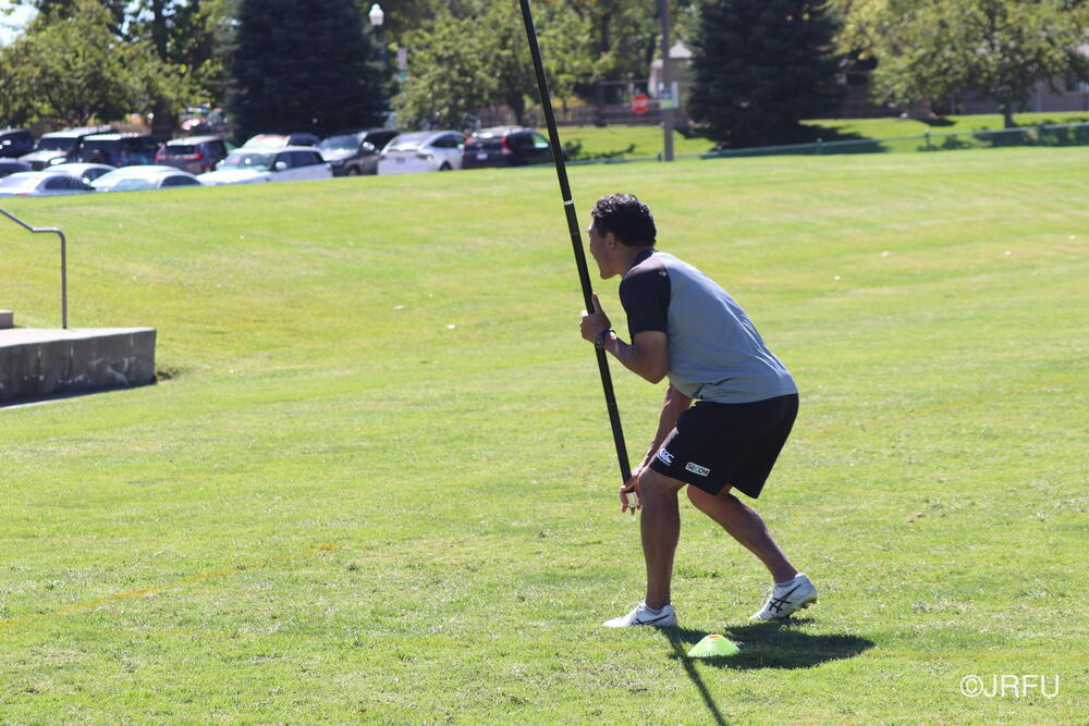 原田選手「メンバー外でもできることはいろいろあって、フロントローのメンバーやゲームリーダーと話したり、準備のところでフッカーの速さについて話したり、といった会話などをしています。アメリカに来て環境も変わりいつものことができない状態で、オンザフィールドだけではなく、オフザフィールドで整理整頓したりだとか、時間を守ったりとか、みんなに共有するようにしています」