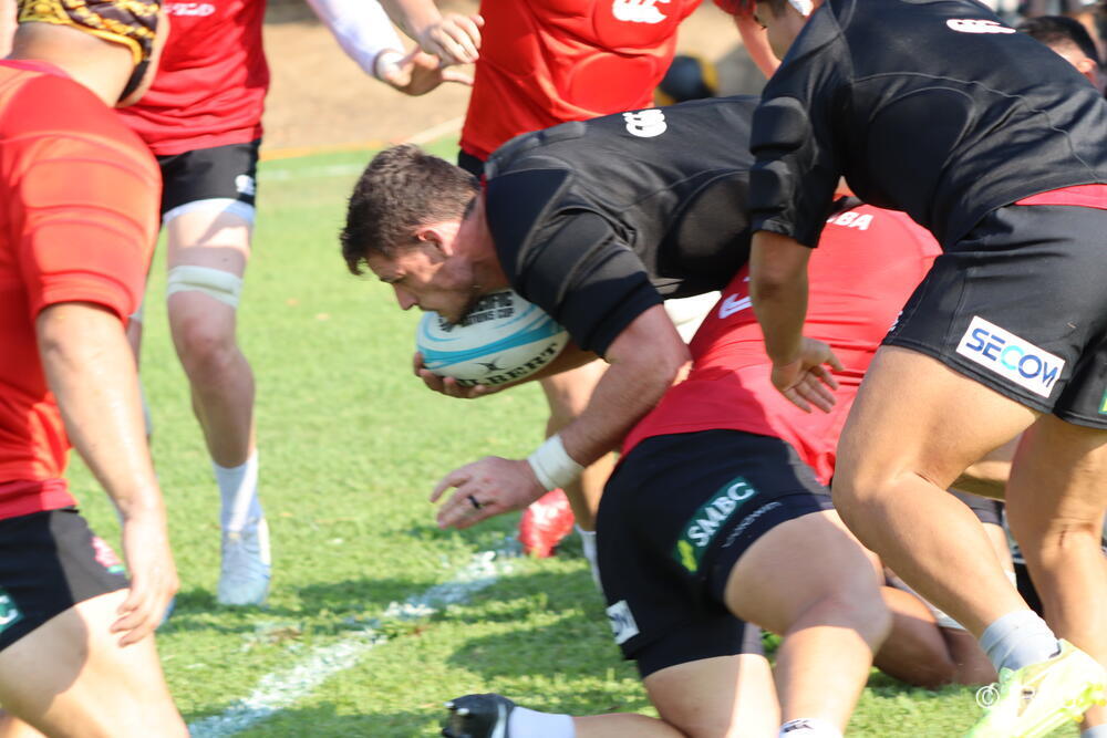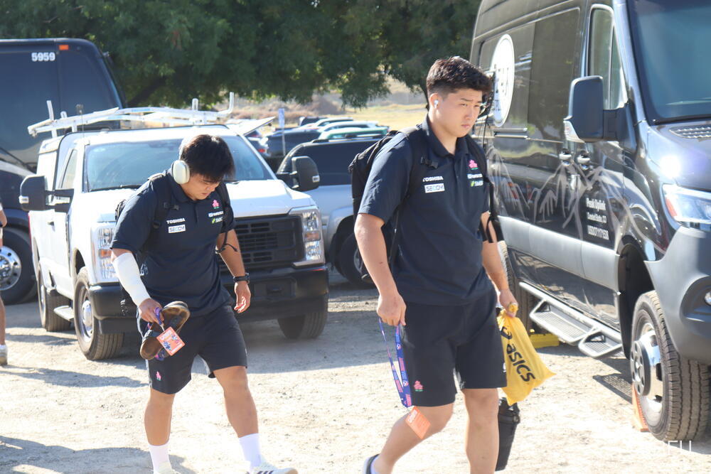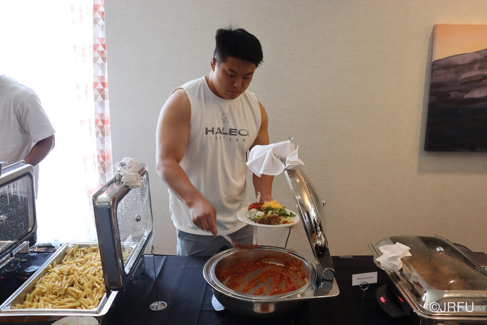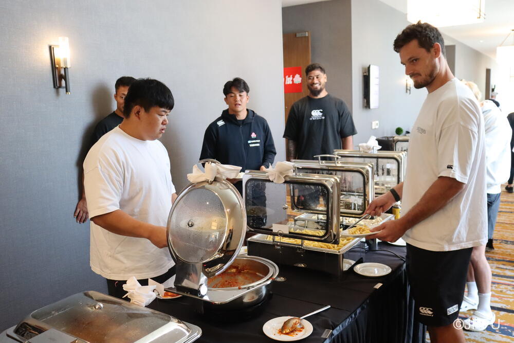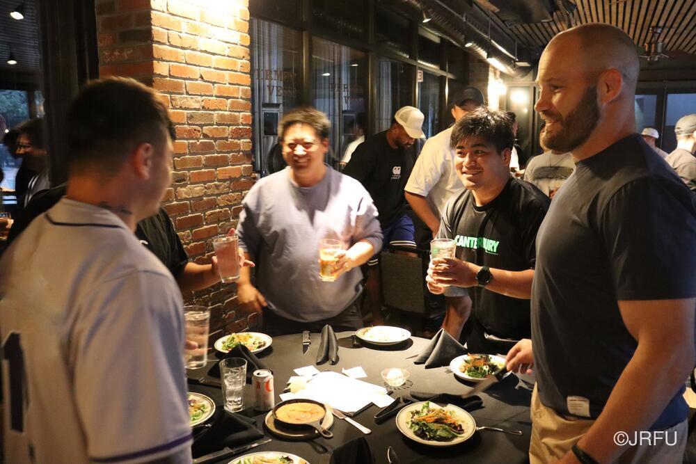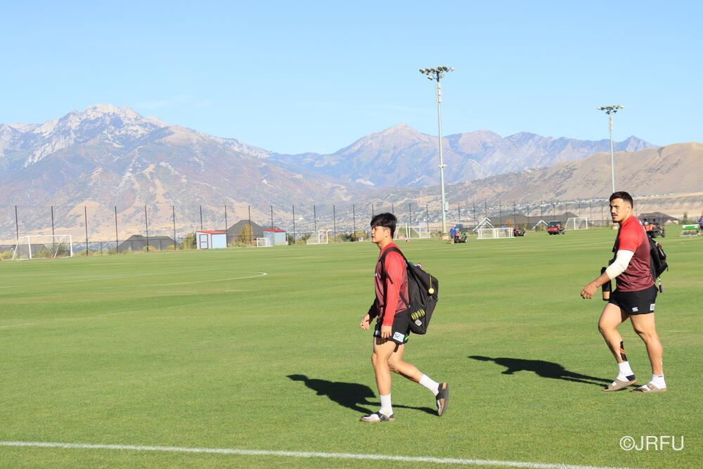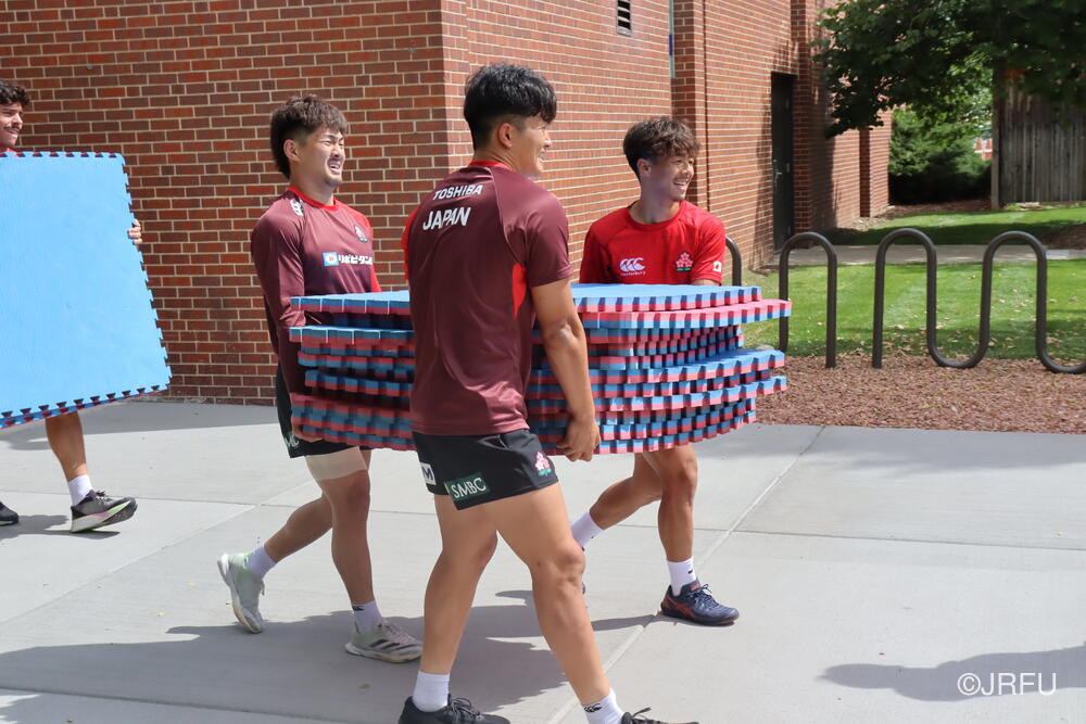 原田選手「メンバー外でもできることはいろいろあって、フロントローのメンバーやゲームリーダーと話したり、準備のところでフッカーの速さについて話したり、といった会話などをしています。アメリカに来て環境も変わりいつものことができない状態で、オンザフィールドだけではなく、オフザフィールドで整理整頓したりだとか、時間を守ったりとか、みんなに共有するようにしています」