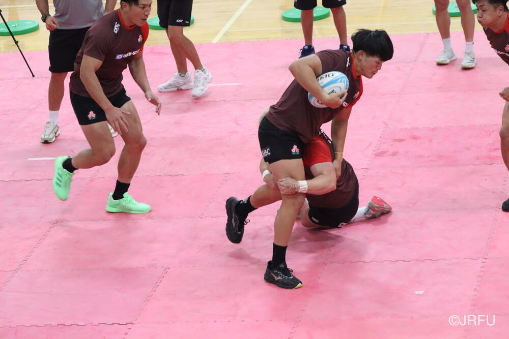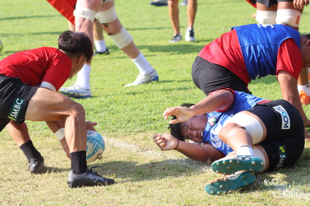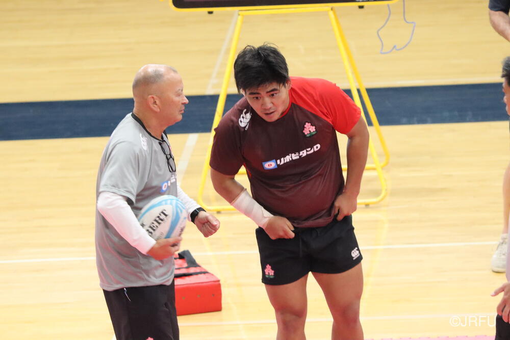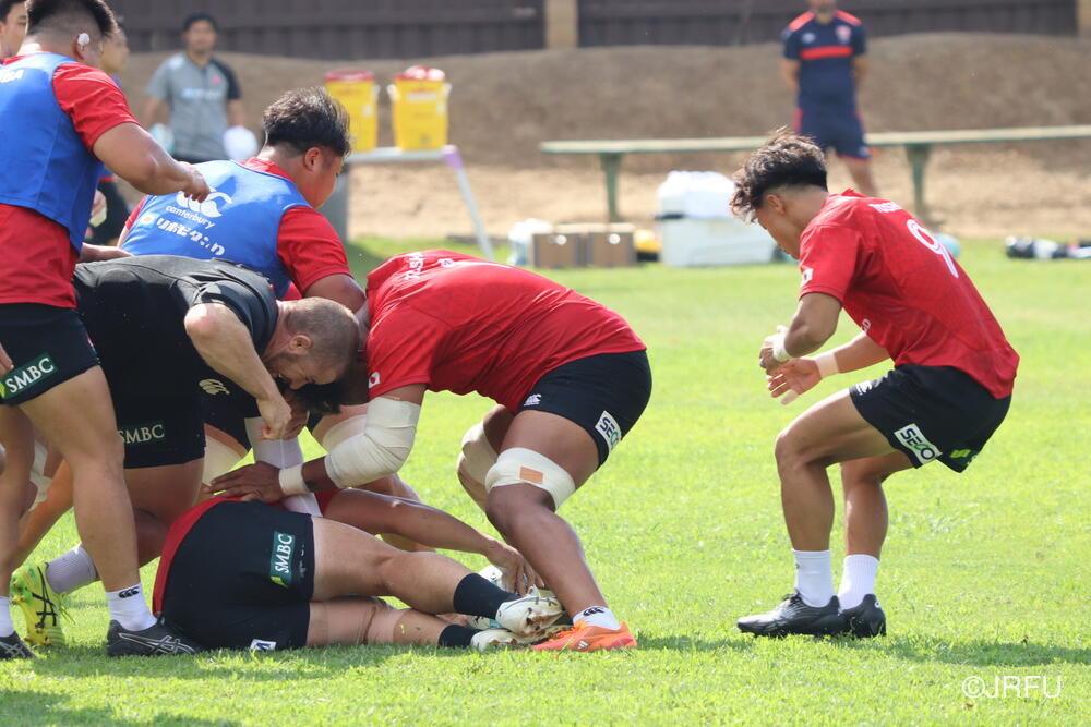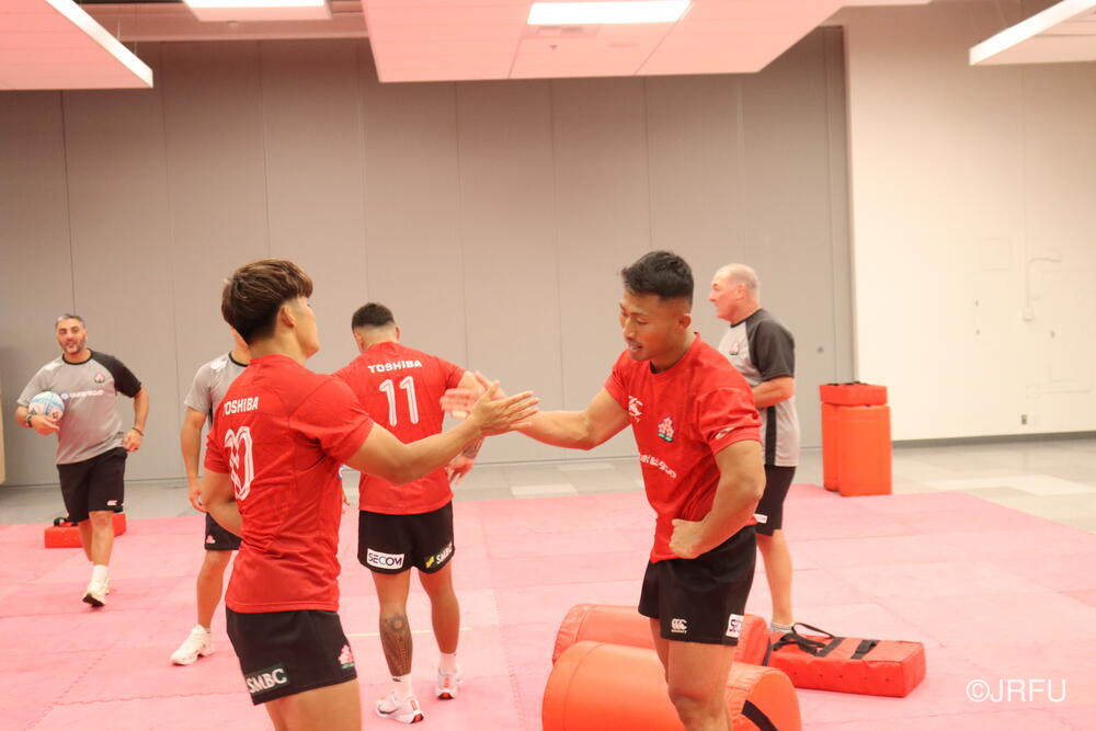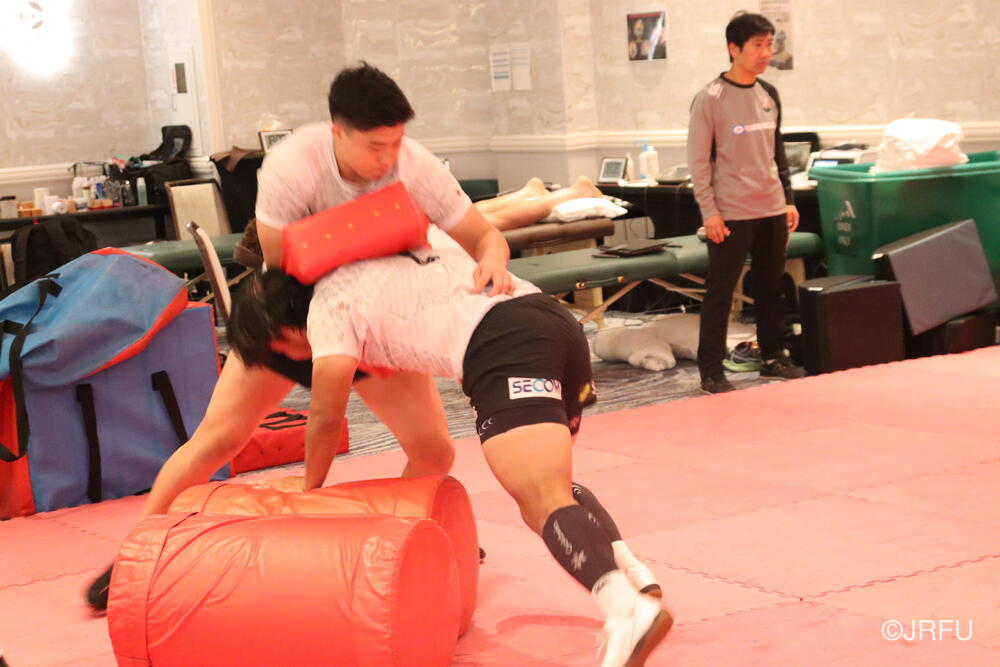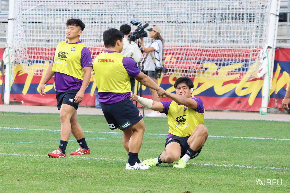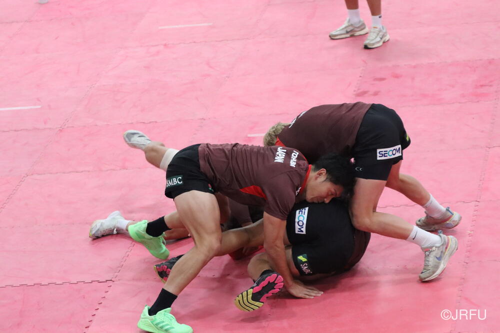 若い選手たちがステップアップをして、成長しているところを見られていますし、特に昨日の練習では非常にいい雰囲気で練習をすることができました。特に平生選手です。彼はリーグワンで10分くらいしか試合に出ていない選手なのに、昨日は、ずば抜けたパフォーマンスをしてくれました。このようにスコッド全体が成長というか、層の厚みができたということを感じています。」