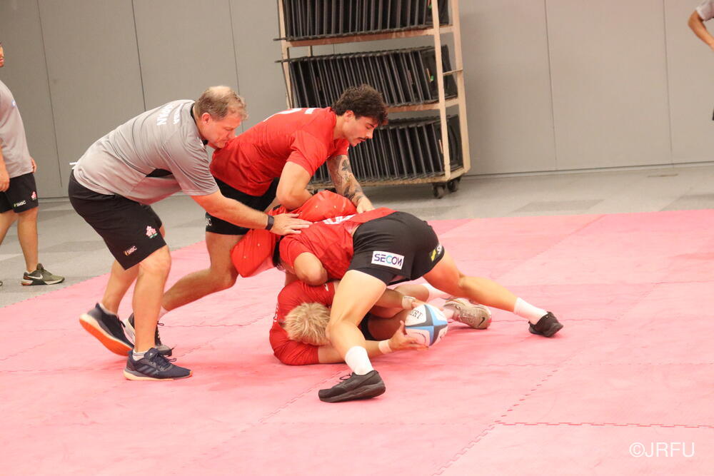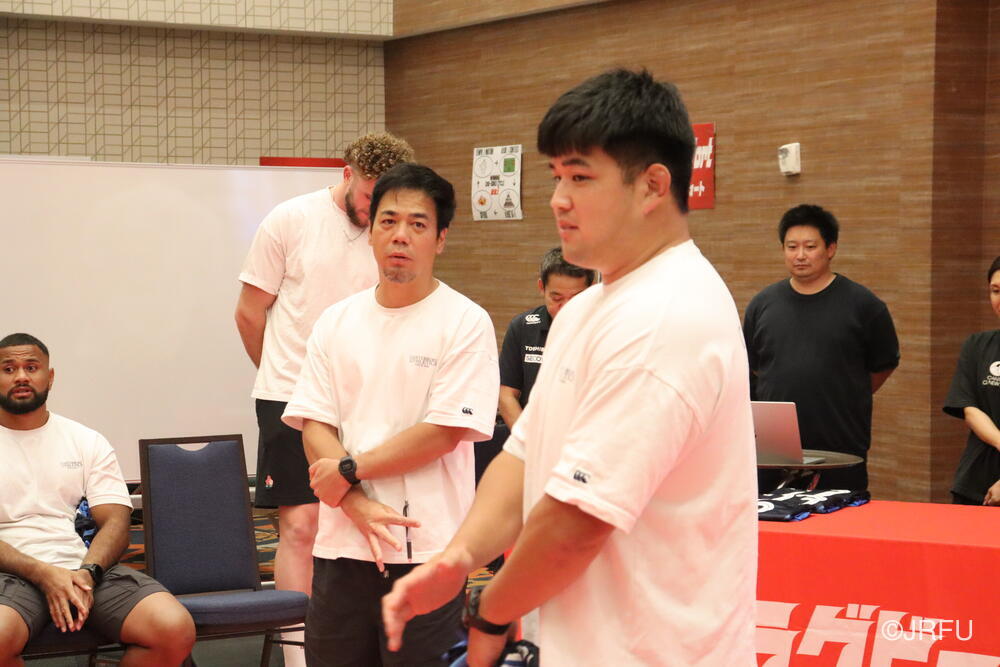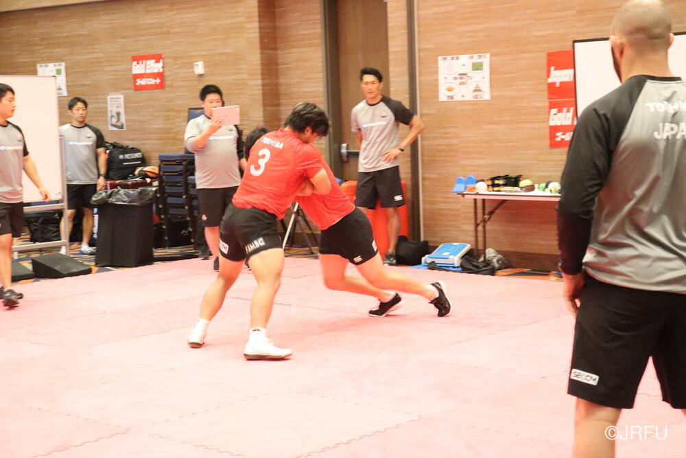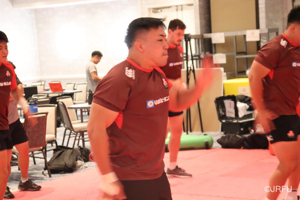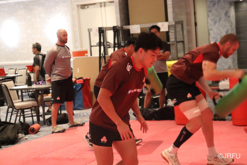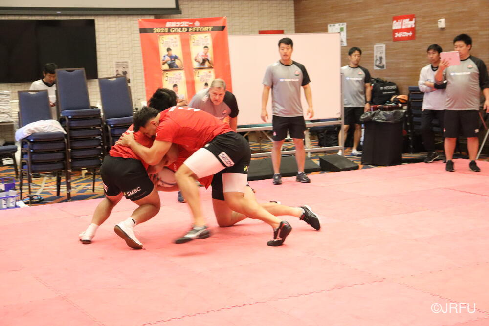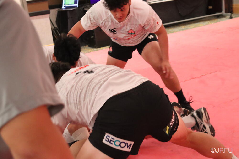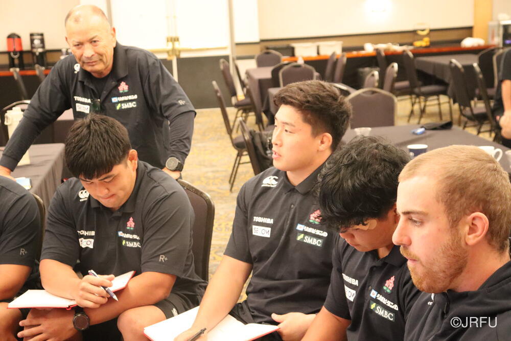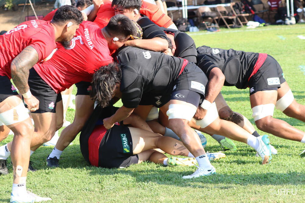 若い選手たちがステップアップをして、成長しているところを見られていますし、特に昨日の練習では非常にいい雰囲気で練習をすることができました。特に平生選手です。彼はリーグワンで10分くらいしか試合に出ていない選手なのに、昨日は、ずば抜けたパフォーマンスをしてくれました。このようにスコッド全体が成長というか、層の厚みができたということを感じています。」