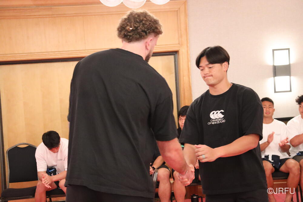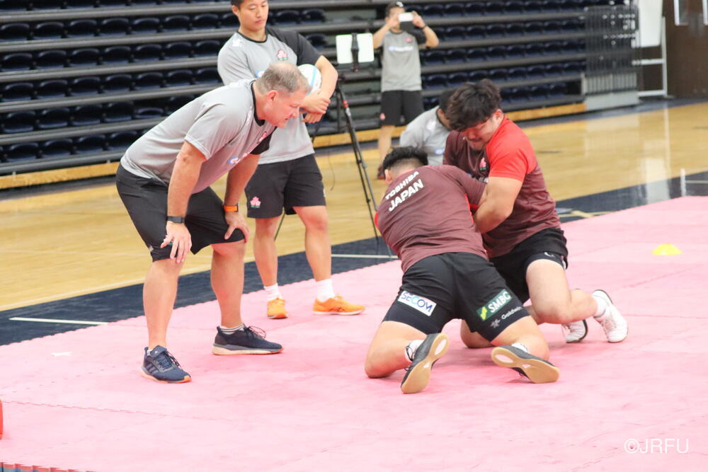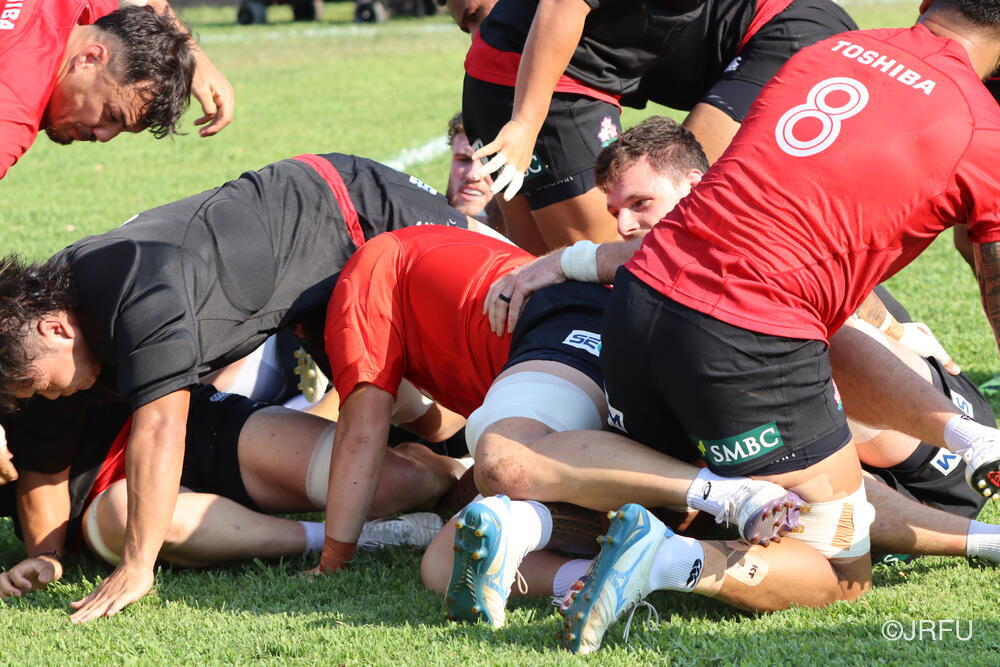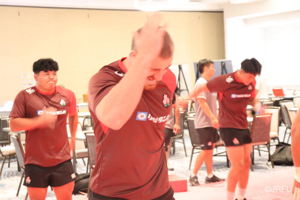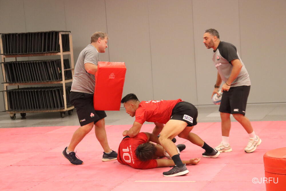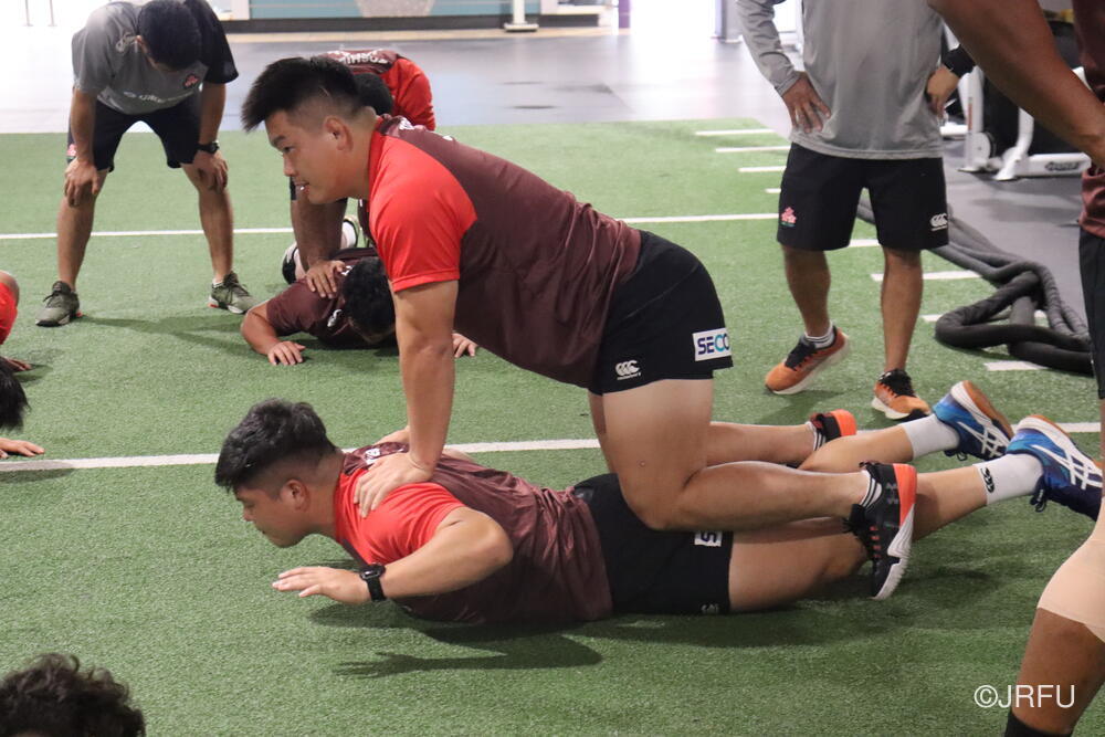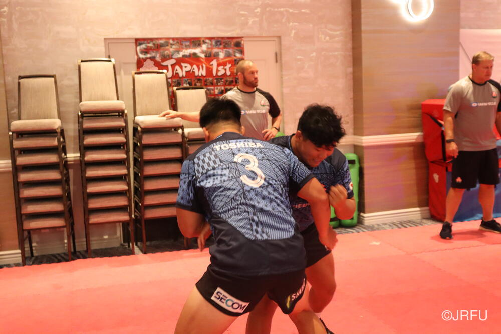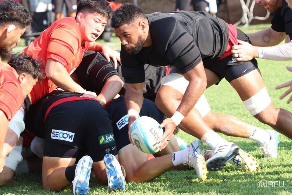 若い選手たちがステップアップをして、成長しているところを見られていますし、特に昨日の練習では非常にいい雰囲気で練習をすることができました。特に平生選手です。彼はリーグワンで10分くらいしか試合に出ていない選手なのに、昨日は、ずば抜けたパフォーマンスをしてくれました。このようにスコッド全体が成長というか、層の厚みができたということを感じています。」