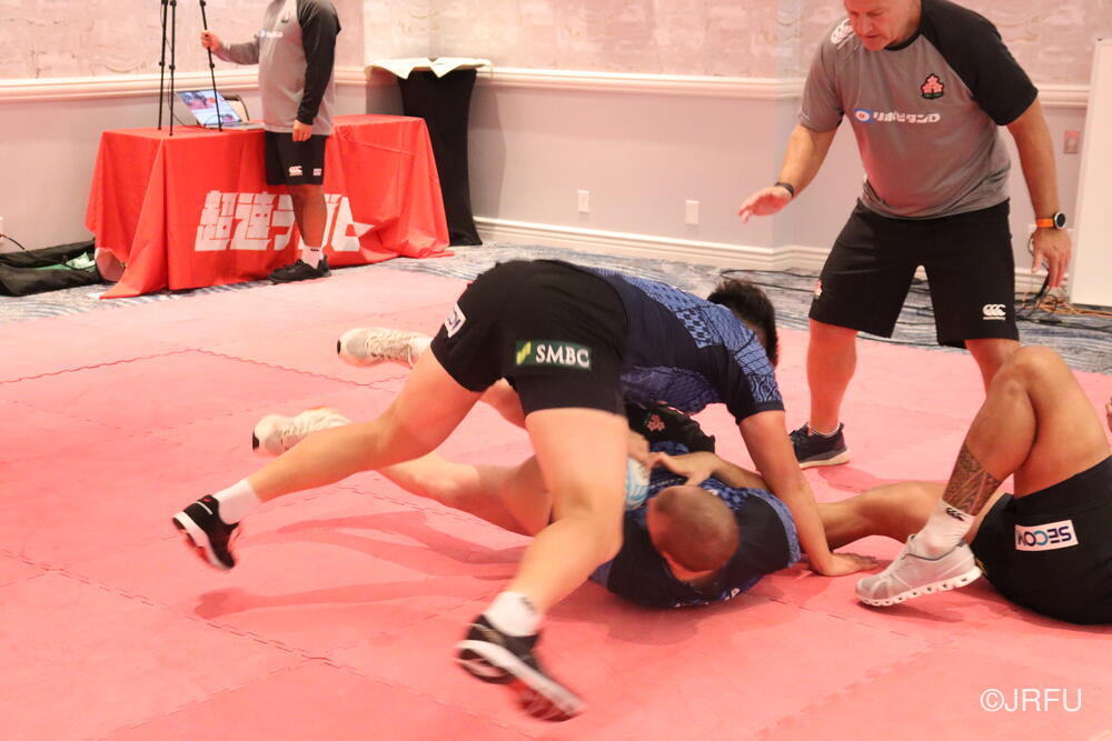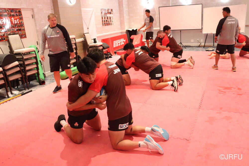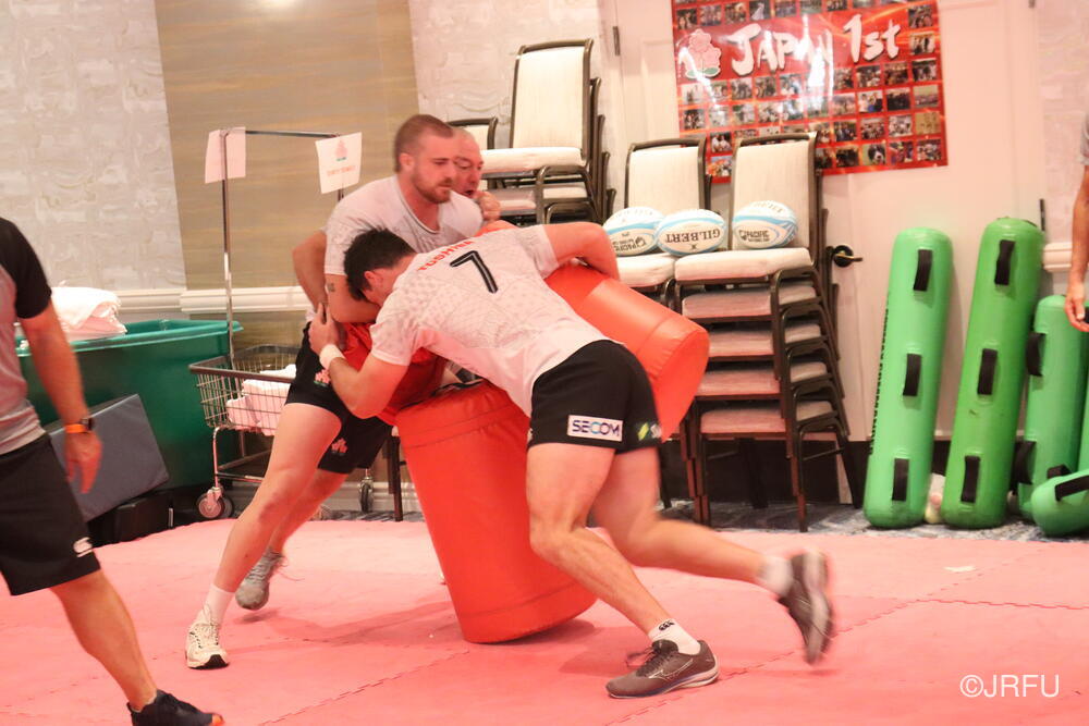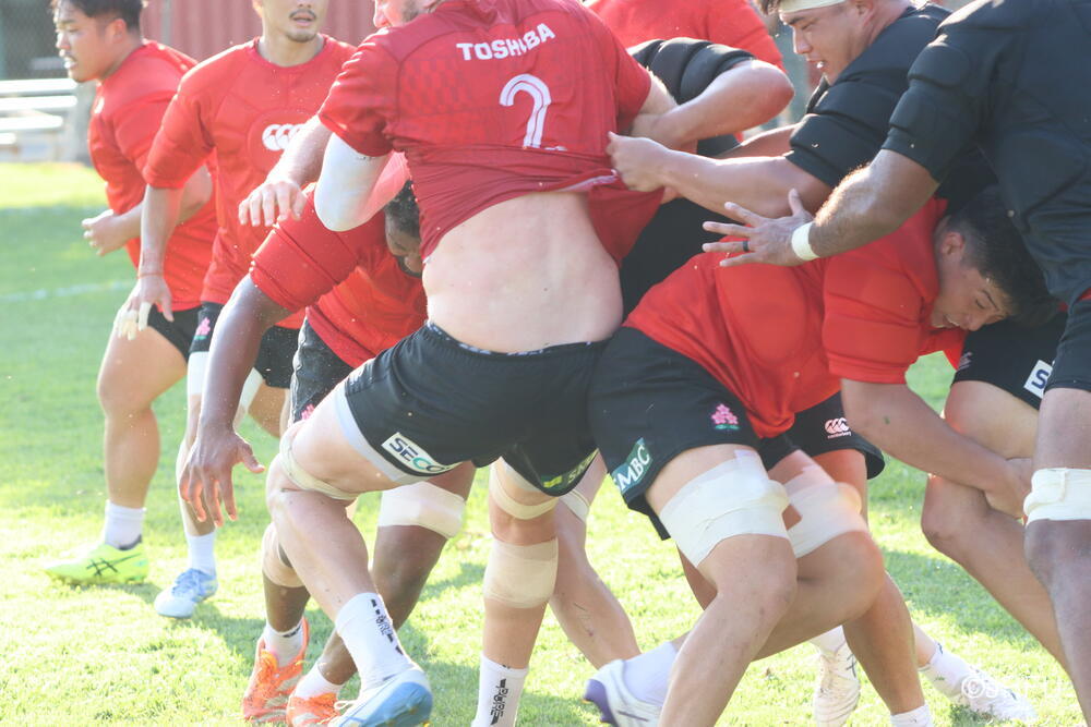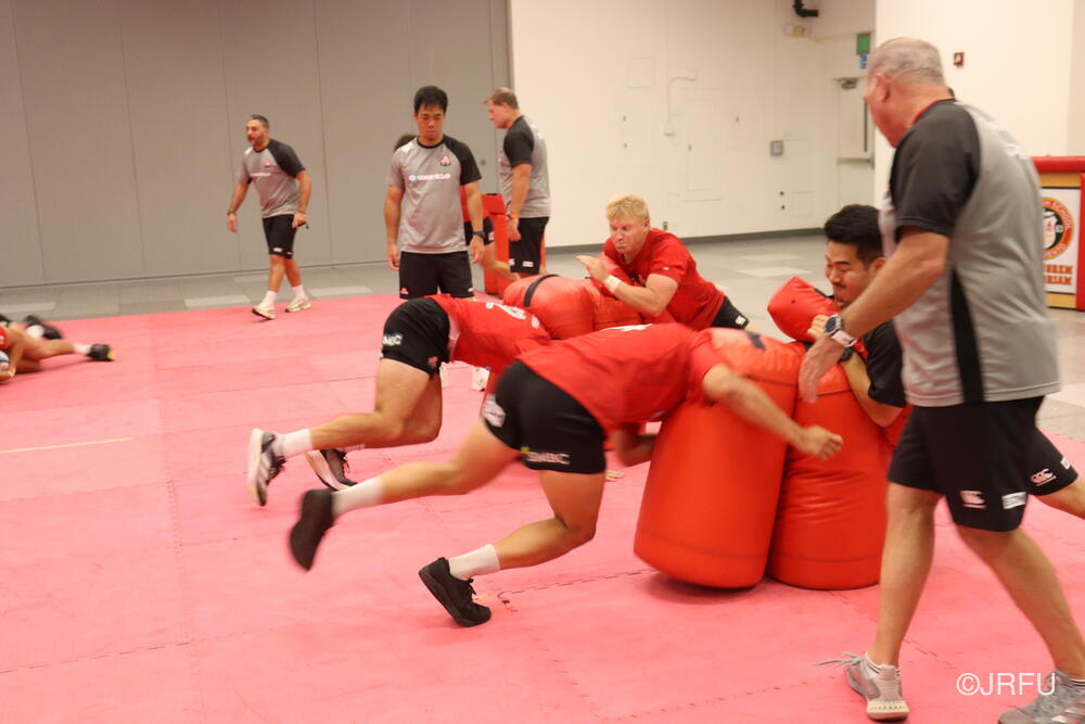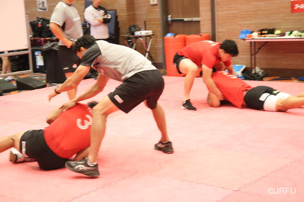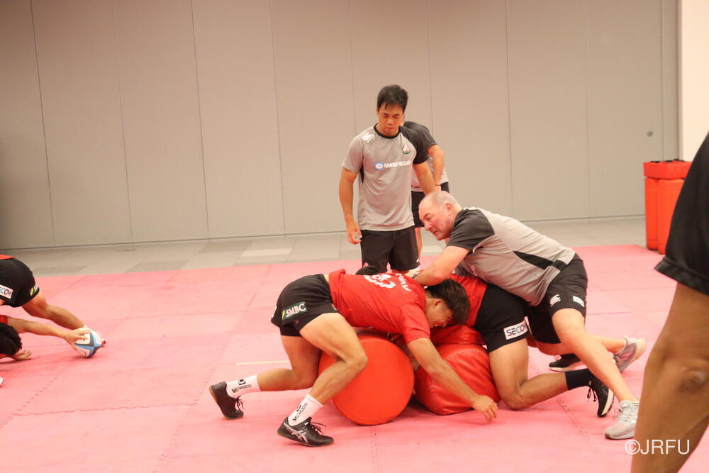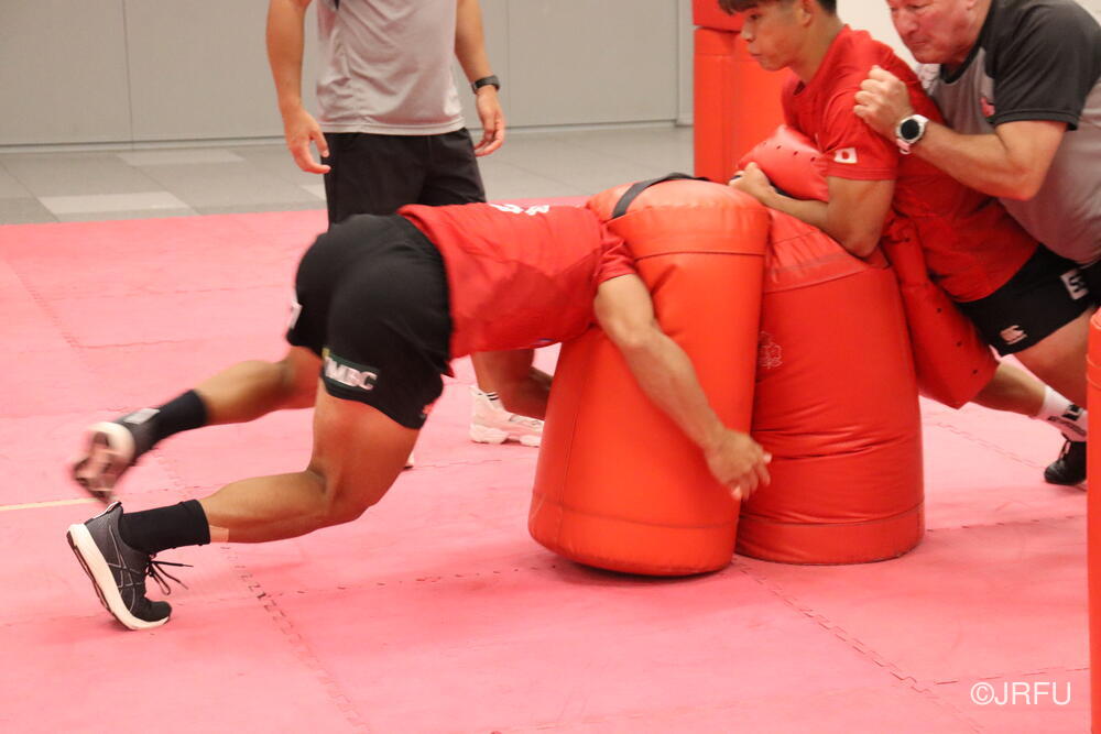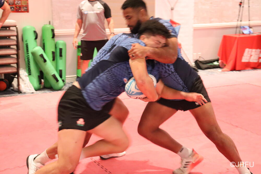 グラウンドでの練習の後も、トレーニングは続きます。こちらは今シーズン一貫して最重要強化項目となっているブレークダウンの練習です。