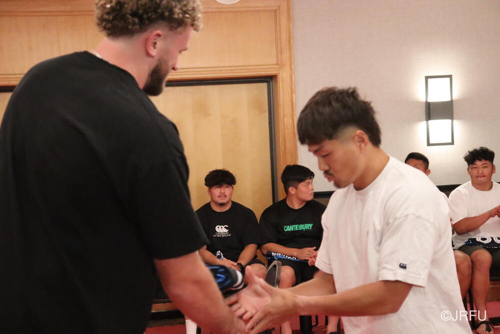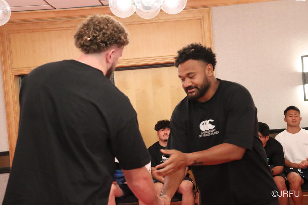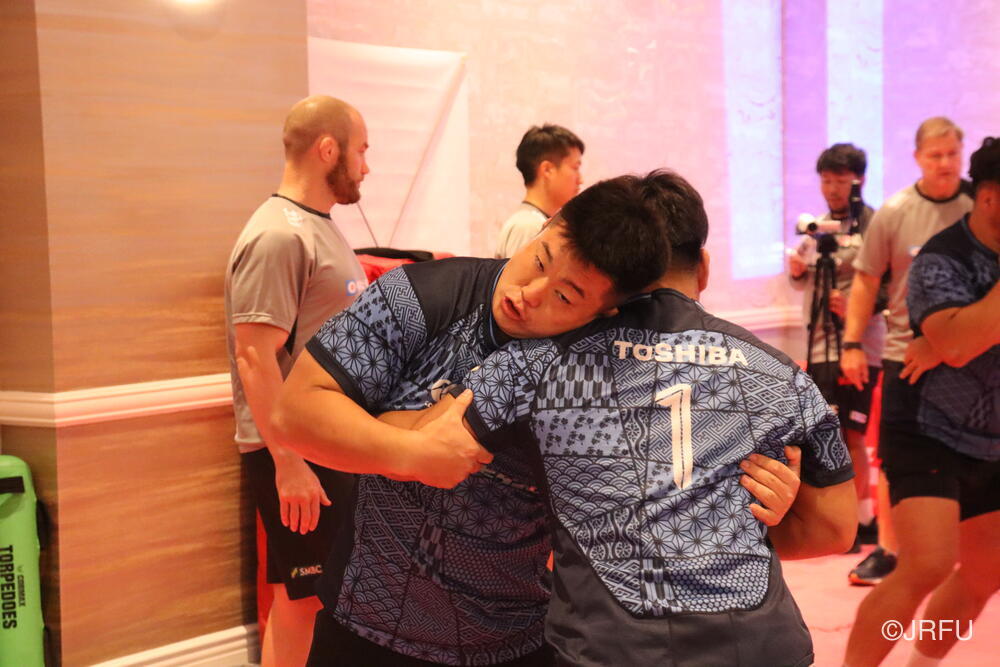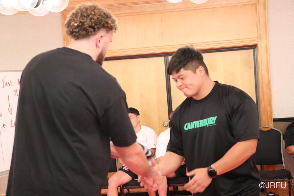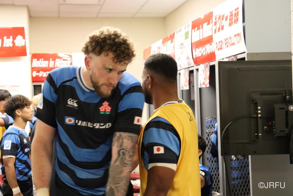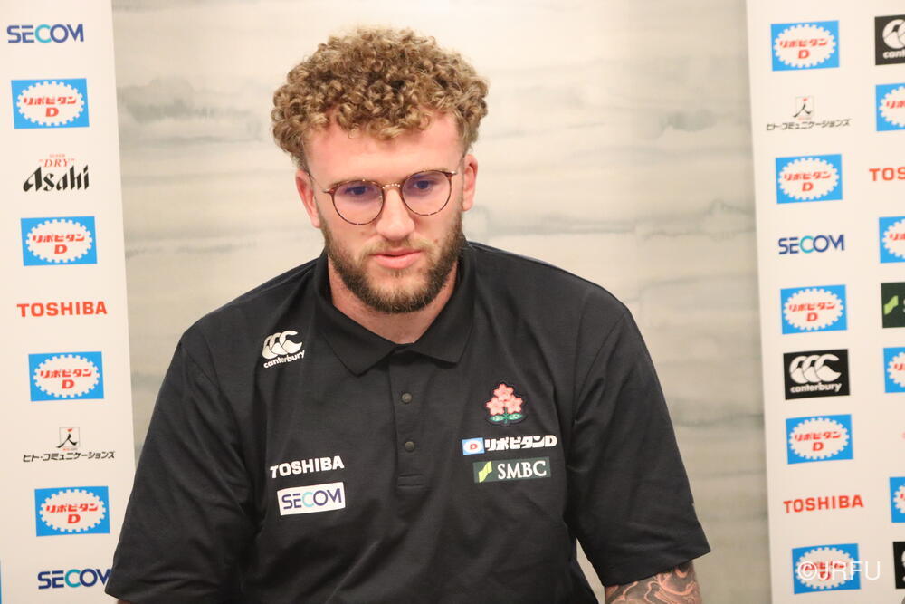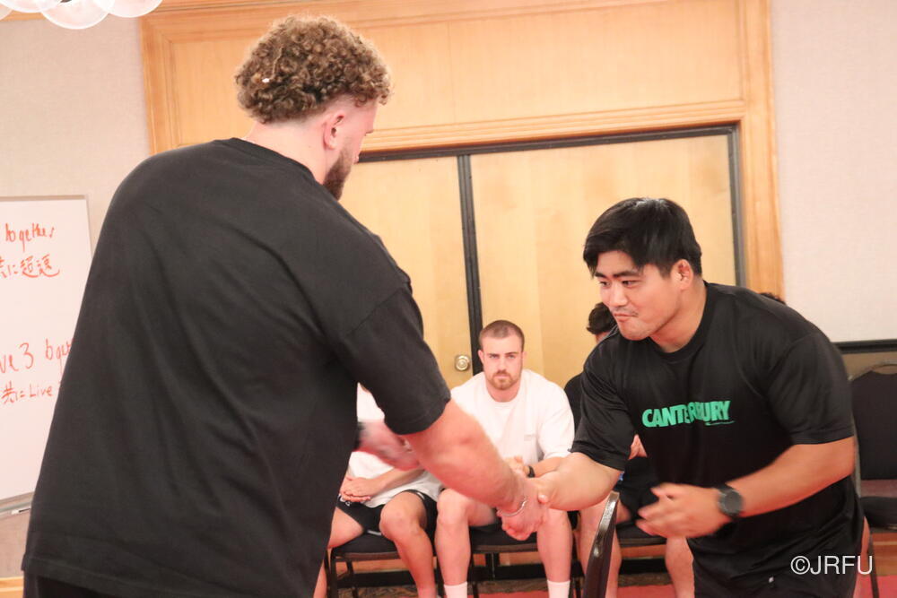 ワーナー選手「オフザフィールドの部分は全部衛さん(原田選手)に任せています。フロントローの中心で衛さんが凄くリードしていて、フォワードがよりタイトなパックになってきているように思います」
