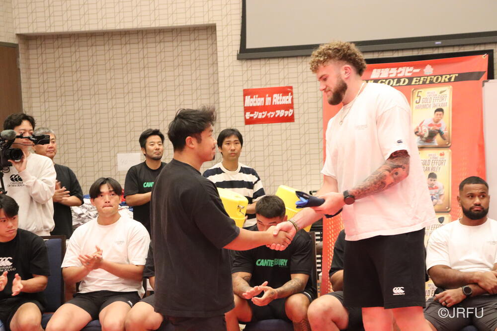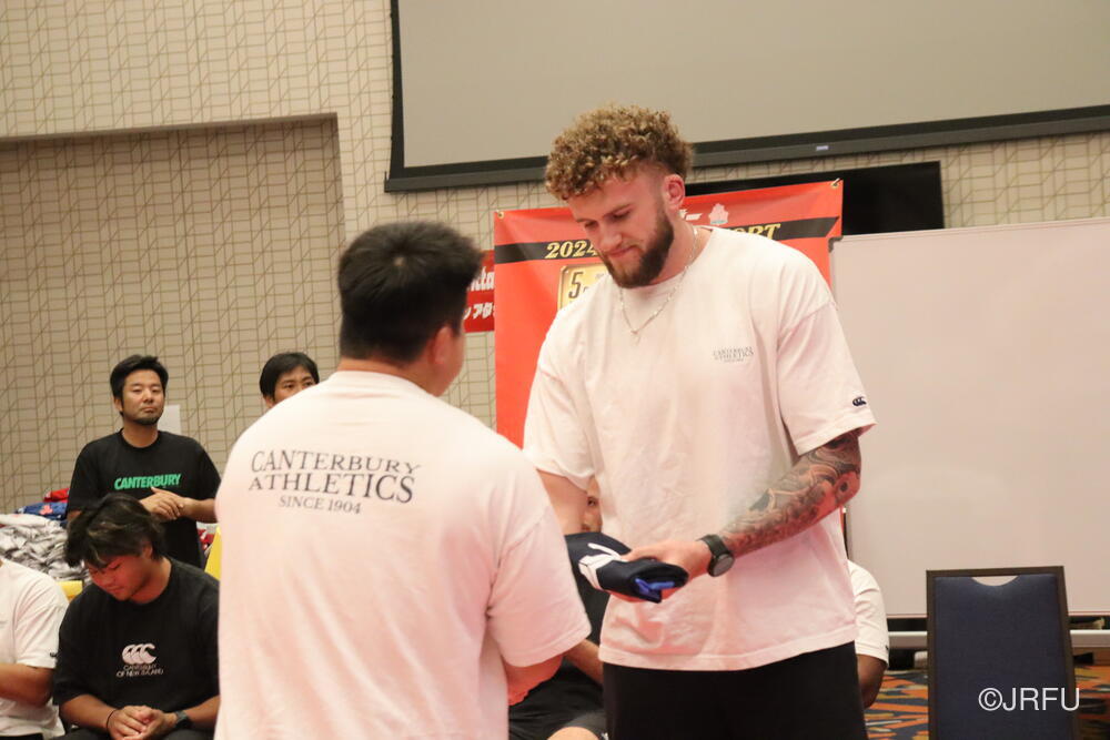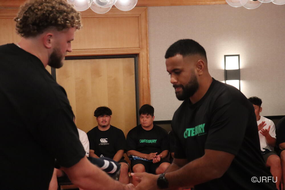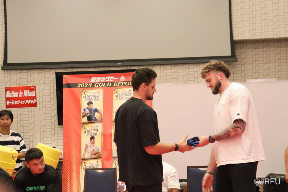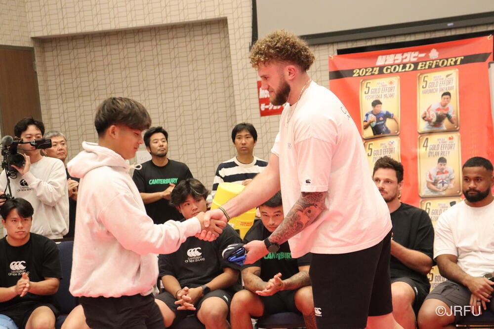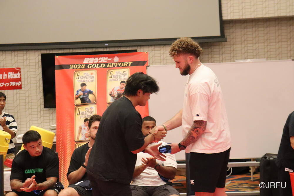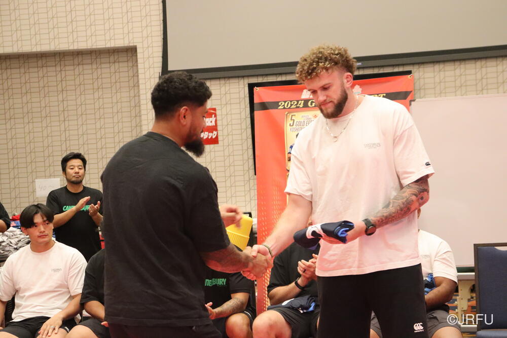 ワーナー選手「オフザフィールドの部分は全部衛さん(原田選手)に任せています。フロントローの中心で衛さんが凄くリードしていて、フォワードがよりタイトなパックになってきているように思います」