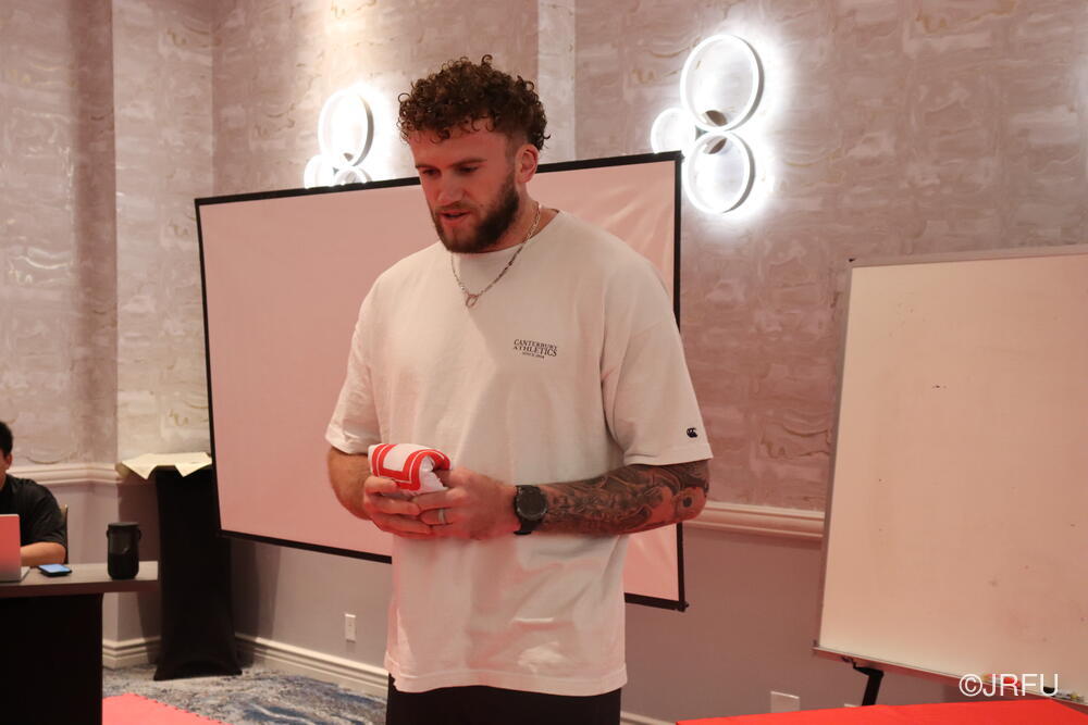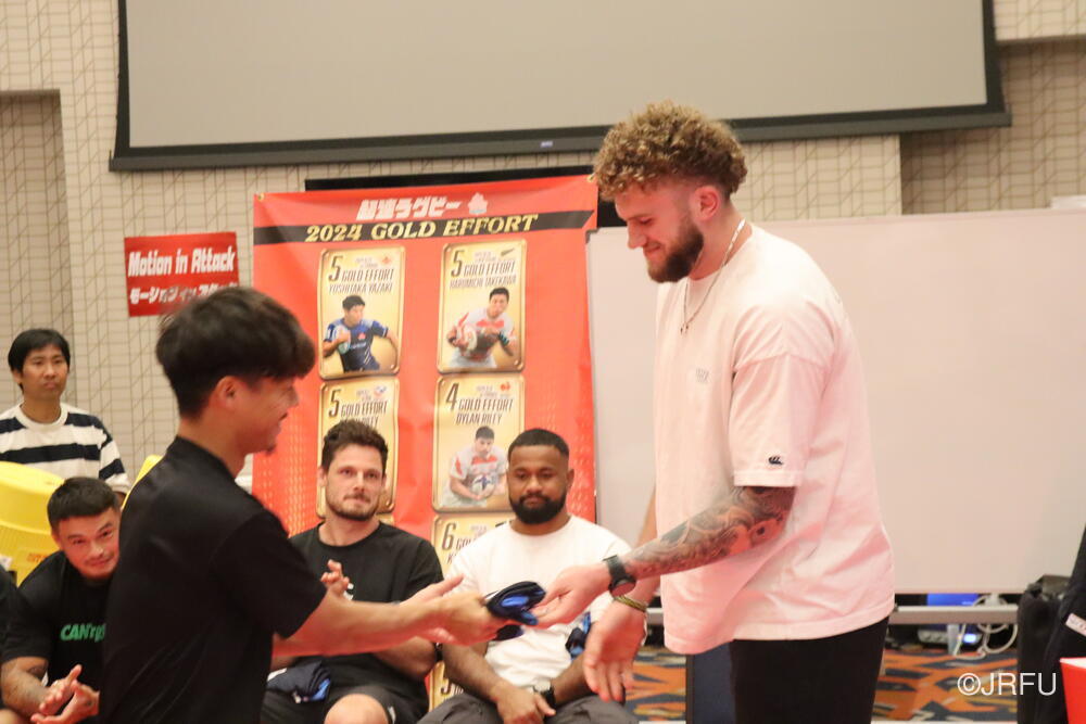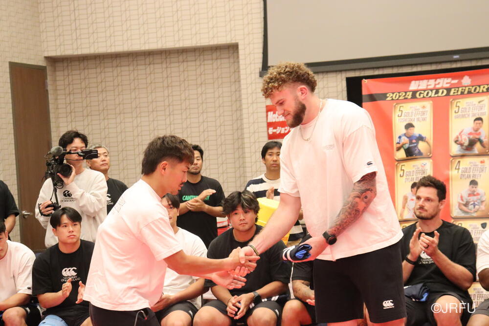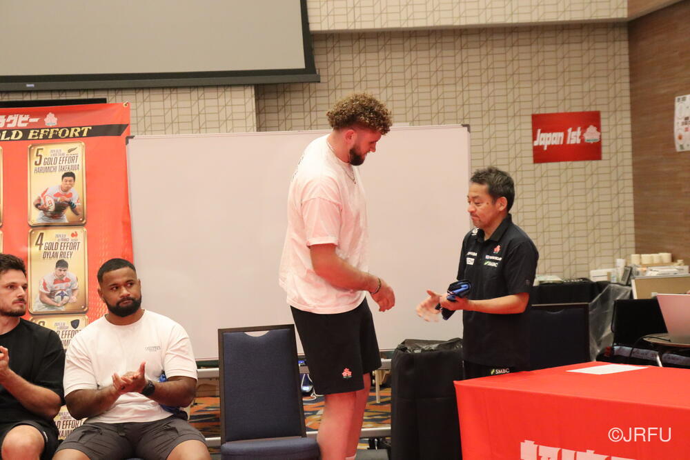江良選手「24歳になりました。フィジー戦、体張り続けます!優勝しましょう!」とスピーチしました。