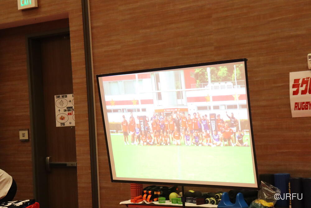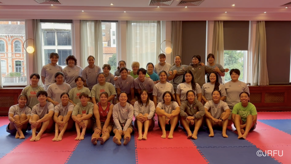 スクリーンに映し出されたのは、「女子ラグビーワールドカップ2025イングランド大会」で奮闘を続ける桜フィフティーン(女子日本代表)の皆様。自身もスペイン戦を控える中、男子チームに応援のメッセージを送ってくれました。