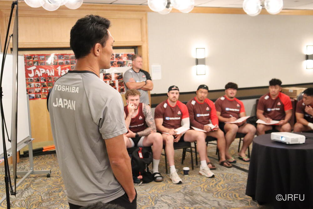 - 「過去の成績、ジャパン対アメリカの歴史に関しては気にしていません。現在自分達が置かれている立場を最も重視しています。特に今回のメンバーに関しては(苦戦した)過去の成績には全く携わっていない人たちなのであまり関連性がないと思っています。唯一我々がこだわるところはしっかりとした準備を行うことです。もちろん、試合の中でタフな時間帯もあると思いますが、その時こそしっかりと冷静さを保ちながら、次に何をするべきなのか考えながら戦い続ける。そしてジャパンらしくプレーをすることが大事だと思っていて、実際のトレーニングの中でも訓練しています。タフな時にこそ自分たちで打開しながら、自分達の形に戻すことを意識しながらやっていきたいと思います。」