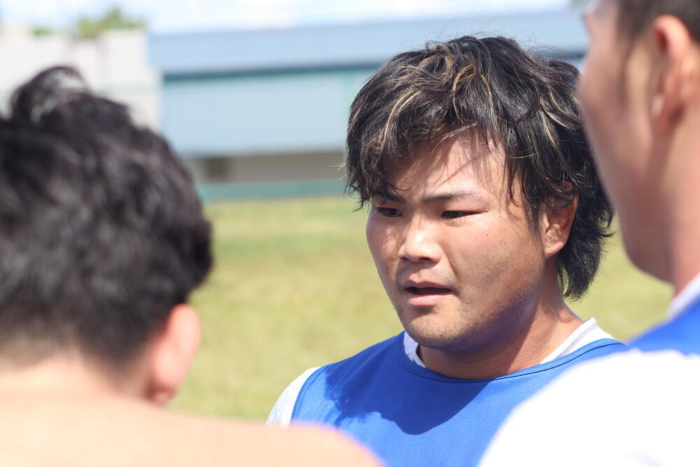 スクラム練習後も、選手同士で修正点を話し合っていました。